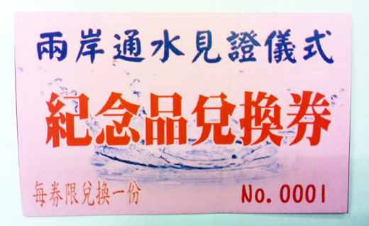 金門縣政府昨(8月5日)如期於田埔水庫受水池舉行通水儀式,並以辦喜事心情廣邀鄉親一同見證這歷史的時刻,並提供接駁服務,自各鄉鎮接送民眾往返會場觀禮。金門縣政府也準備紀念品致贈給與會鄉親,由於現場數量不足,致部份鄉親改發放兌換券,敬請持有「兩岸通水見證儀式紀念品兌換券」之民眾,於107年8月31日止至林務所領取。 金門縣林務所表示,縣府於昨日上午如期假田埔水庫受水池舉辦通水儀式,鄉親踴躍參與見證兩岸通水歷史性的一刻,縣政府也準備3000份「兩岸通水見證儀式紀念品」,致贈給每位到場觀禮的鄉親。不過由於民眾熱情參與,並分別自兩個出口搭乘接駁車離開會場,由於其中一處現場紀念品數量不足,故有部份民眾改以兌換券方式處理,敬請民眾憑「兩岸通水儀式紀念品兌換券」(如圖),於即日起至107年8月31日止,上班時間(星期一至星期五;8:30-11:30,13:30-17:00),前往林務所行政大樓服務台領取。