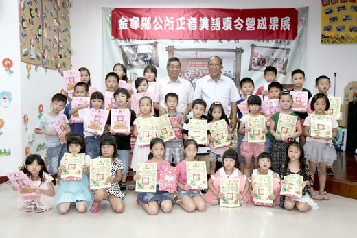 由金寧鄉公所辦理107年暑期「ㄅㄆㄇ正音班」研習暨暑期「美語夏令營」初階班活動,經十二天研習後,舉行結業成果發表會。參加夏令營的學員們大方秀成果,將三周來的營隊訓練成果以唱歌、舞蹈呈現出來,讓台下的媽媽開心觀賞,露出滿意笑容,拿出相機閃個不停。 這項由金寧鄉公所、金寧鄉代表會辦理的「ㄅㄆㄇ正音班」暨暑期「美語夏令營」的初階班結業成果發表會,代表會主席陳成泉、公所主秘蔡世舜到場參與驗收發表的學員大方秀成果,並邀請家長參與驗收。 這項結業式由金寧鄉長陳成勇主持,他首先感謝金寧鄉代表會對於這項營隊的支持。同時感謝學生家長對於英語夏令營與正音班的支持,三周來任勞任怨的接送。另也感謝陳婕妤、楊淑珍指導老師三周的活動所付出的辛勤。看到孩子們的精彩演出,可知這次夏令營活動成效卓著,也讓家長們對其學習成果放心滿意。他希望大家以感恩、認真的心來學習。美語是現在很重要的語言,而公所提供這麼好的機會,也希望學童們利用時間認真打好基礎。 陳成勇表示,為激發兒童對英語學習的興趣,自幼透過國際語言學習打開視野,建立國際關係,暑期規劃一場兒童英語體驗夏令營,用生活化的內容、活潑生動的方式,引導幼兒園至小三學童接近英語,以激發兒童對英語學習之興趣。 成果發表活動由二個班級分別輪流擔綱演出,透過歌曲、唱跳等方式,將學習成果呈現給到場的父母。會後並由陳鄉長頒發獎勵品予學習優秀的學童,並與所有孩子們合影留念後,結束這場熱鬧有趣的成果發表會。 金寧鄉公所指出,公所開辦的研習活動,都是利用金寧鄉圖書館二樓來舉行;正音班研習活動參加對象以各校之幼兒班大班學童,計招收四十名幼兒班大班的小朋友,總時數共24小時,活動課程安排多元化及生動活潑的學習方式,師資聘請於托教領域任教正音班專任老師陳婕妤指導授課,教導小朋友認識注音符號、韻母正確發音及書寫方式、拼讀練習。另一項美語夏令營今年辦理初級班,計招收四十名國小一、二年級學童,總時數24小時,聘請美語專任教師楊淑珍指導授課,結業時也舉行成果展示-話劇表演來驗收成效。