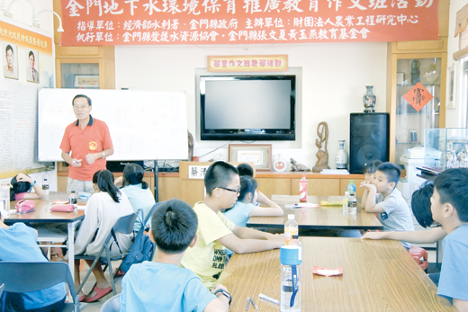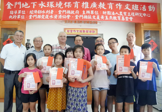 張文夏黃玉燕教育基金會「107年金門地下水環境保育推廣教育作文班」課程進入尾聲,水利署及財團法人農業工程研究中心到場進行「台灣地區地下水資源運用與概況」專題演講,希望根植地下水保護觀念於學童心中,並產生下而上的影響效應,讓人人愛水及節約用水。水利署地下水中心主任程運達、水紋技術組科長簡文奎代表頒獎給9位作文班績優學子,並勉勵學童精進寫作技巧的同時,也能生活中落實水資源保護。 水利署、財團法人農業工程研究中心,連續第三年配合財團法人張文夏黃玉燕教育基金會「107年金門地下水環境保育推廣教育作文班」等教育活動抵金辦理「台灣地區地下水資源運用與概況」專題演講,水利署地下水中心主任程運達、水紋技術組科長簡文奎以及財團法人農業工程研究中心助理研究員以及金門縣愛護水資源協會等,告訴學童以及陪同與會的家長,台灣水資源當前概況,以及降雨分佈不均、河川水污染以及水資源供需等問題,也特別說明以金門地下水資源運用情形,國人每日用水需求、地下水遭污染之因,也以金門情形為例,告訴學童金門屬於缺水區,對於水資源之保護更加重要。最後,也透過有獎徵答加深學童印象。 根據水利署以及財團法人農業工程研究中心人員表示,連續3天配合張文夏黃玉燕教育基金會辦理作文班及書法班活動,進行地下水資源保育宣導,主要讓保護地下水資源之重要能夠自小扎根於學童心中,向外影響家人或親友。從歷次活動中發現,與會學子普遍對於水資源及保育有基本觀念,並且能夠侃侃而談說明原因。期許學子於會後成為水資源保育小尖兵,把正確水資源保護及節約用水等觀念落實於生活之中,下而上甚至向外影響更多人,讓人人愛水、護水,珍惜水資源。 張文夏黃玉燕教育基金會「107年金門地下水環境保育推廣教育作文班」課程,也在昨日專題演講中告一段落,並進行結訓頒獎。經過平常表現以及寫作競賽等進行評比,計有9位學子從30位學員中脫穎而出獲頒獎狀及獎金嘉勉,獲獎名單如后: 國小高年級組:特優,金沙國小莊博硯,獎金新台幣600元。優等獎,金湖國小李宥霖,獎金新台幣400元。佳作,開瑄國小陳邦晏,獎金新台幣300元。 國小中年級組:特優,金沙國小黃綺晴,獎金新台幣600元。優等,金沙國小柯思綺,獎金新台幣400元。佳作,金沙國小何昱潔,獎金新台幣300元。 國小低年級組:特優,金湖國小陳若瑄,獎金新台幣600元。優等,金沙國小黃紫睛,獎金新台幣400元。佳作,金湖國小陳若瑀,獎金新台幣300元。