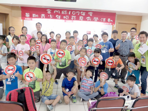 衛生局舉辦的「金門縣107年度暑期拒菸夏令營」昨(1)日登場,共有40位拒菸小尖兵報名參加,衛生局表示,希望藉由本夏令營,讓菸害防制觀念從小建立,進而遠離菸品誘惑,並能回到家庭中、校園中推動無菸環境。 衛生局表示,暑假一向是青少年可能接觸菸品的高風險時期,青少年嘗試吸菸除了會成為難以擺脫的「哈菸族」外,菸品也會對於青少年健康帶來許多危害,為此,金門縣衛生局為防制青少年吸菸,特委託救國團金門縣團委會辦理「金門縣107年度暑期拒菸夏令營」,於8月1日上午熱鬧登場,40名拒菸小尖兵齊聚金門青年活動中心學習拒菸技能,讓菸害防制觀念從小建立,進而遠離菸品誘惑,並能回到家庭中、校園中推動無菸環境。 衛生局指出,依國民健康署青少年吸菸行為調查顯示,青少年吸菸原因除了好奇心之外,又以同儕或家人若有吸菸,對於青少年的吸菸行為影響最大。金門縣衛生局呼籲,家長們為了孩子及全家人健康,請有吸菸習慣者趕快力行戒菸行動,可善用既便利又多元化的戒菸管道戒菸,本縣共有17家合約醫療院所及社區藥局提供二代戒菸用藥或衛教服務(費用由菸品健康福利捐的收入支應,本縣戒菸者免付費),也可以撥打免費戒菸專線0800-636363,三管齊下能更輕鬆成功戒菸。 金門縣衛生局長王漢志鼓勵青少年們多參加健康的活動,避免沉迷於網路遊戲或涉足於危險及有害身心健康之場所。並呼籲地區販售菸品業者能一起為青少年健康把關,遵守禁止供應菸品予未滿18歲者之規定,以免受罰。