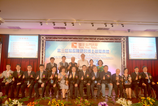 國立金門大學8月1日舉行第三任校長就職典禮,陳建民博士正式上任,金門縣長陳福海回顧金大發展歷程,感謝過程中付出努力的人士,並感謝金大團隊齊心經營,打造金大品牌。新任校長陳建民說明未來領航金大的重要發展方向,強調將以勇於負責的態度,戮力辦學,讓金大朝正向、永續方向繼續前進,邁向國際化大學。 就職典禮於昨日下午二時在金大圖資大樓舉行,金門縣長陳福海、陸委會副主委邱垂正、立委楊鎮浯、縣議會議長洪麗萍、副議長謝東龍、議員許玉昭、王碧珍、陳滄江、民進黨社運部主任宋岫書、成功大學院長林正章、勤益科技大學副校長李鴻濤、聯合大學院長張良漢等各校的祝賀團、台灣金門同鄉會總會總會長李台山所率領的祝賀團、馬來西亞巴生雪蘭莪金門會館主任李錫耀所率領的祝賀團,金門各級學校及地方首長、金大歷任校長黃廣志、李金振、卸任校長黃奇及親朋好友、金門各界的鄉親到場祝賀,期盼新任校長陳建民領航金大、邁向卓越。 由金門航空站宣導飛安的機器人「金小讚」以迎賓禮讚開場,透過人工智慧機器人的舞蹈表演與祝賀,加上現場充滿科技動感的燈光與音樂,帶來耳目一新的新氣象。 縣長陳福海稱讚陳建民的豐富行政歷練,陳縣長說,陳建民由金大最早成立之初便返鄉服務投入教學、研究、產學與行政服務,相信金大由他來掌舵,必有卓越前景。陳縣長強調,金門大學與金門的發展是「生命共同體」,期盼陳建民大膽去擘劃,提升學生競爭力,吸引更多學子來金就讀,縣府也會始終和金大站在一起,為了金門、金大未來發展一起攜手努力。 立委楊鎮浯指出,金大發展至今,歷經很多人的努力,如今黃奇校長卸下重任,陳建民校長承擔重擔,一棒接一棒,領航金大之外,也協助金門共創卓越。 新任校長陳建民表示,將秉持承先啟後、繼往開來的精神,博采周諮並察納雅言,廣泛聽取校內外各方的建言,集思廣益,不斷追求卓越、提高辦學品質和提升全球影響力。 陳建民並指出,未來領航金大的重要發展方向,包含「落實大學精神、加強人本教育」、「邁向國際化大學、提升學校知名度」、「強化校友聯誼、擴大校友服務」、「永續學校發展、廣泛與社區結合」。透過執行四大發展策略,讓金大朝正向、永續方向繼續前進。 卸任校長黃奇感謝曾經幫助與支持金門大學的海內外僑領鄉親,以及各級政府機關的支持,包含金門縣政府及金門縣議會給予金門大學的經費補助、就學津貼與交通券補助、三節家戶配售酒,讓學校能吸引到優秀學生來金就讀。黃奇也對於過去四年任內許多人士慷慨捐款、捐書、捐畫、捐贈藝術品給金大,充實學生學習資源與人文藝術涵養,表達感謝之意。 就職典禮中,民進黨社運部主任宋岫書轉贈黨主席蔡英文的贈禮。國民黨吳敦義主席捎來賀電。縣長陳福海、立委楊鎮浯、台灣金門同鄉會總會、馬來西亞巴生雪蘭莪金門會館、高雄科技大學也分別致贈賀禮。馬來西亞潘斯里拿汀斯里陳開蓉、馬來西亞興華中學也都捎來賀電。陳開蓉女士在賀電中特別提到已故僑領楊忠禮博士在世時心繫鄉梓,情衷金門大學,她與長兒肅斌及全體家人未來都將秉持楊忠禮博士之遺志,一如既往,支持新任校長陳建民的辦學理念。