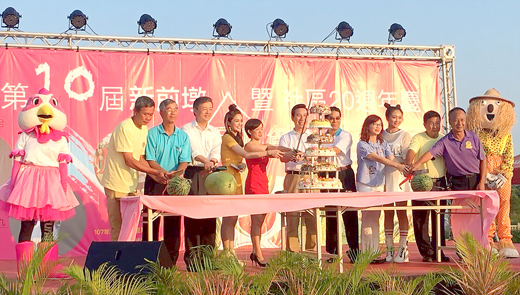 「第10屆新前墩西瓜節暨社區20週年慶」昨日登場,吸引不少民眾前往參與,吃西瓜、品嚐社區慶生蛋糕以及在花海、裝置藝術前拍照打卡,親子共度美好假日時光。縣長陳福海到場參與互動並表示,肯定新前墩社區全體一心營造鄉村之美,吸引兩岸三地遊客到訪,值得各社區學習。他「30年」始終如一,用心做一件事,建構金門美麗幸福島嶼,讓禮運大同篇中之理想社會在金門實現。 「第10屆新前墩西瓜節暨社區20週年慶」昨日熱鬧登場,吸引不少民眾闔家扶老攜幼前往,體驗抓氣球換土雞、吃西瓜、挖西瓜、套圈圈比賽,並於社區內尋寶,和西瓜公仔、花海或古厝雨傘造景打卡兌獎,持園遊券消費集戳章參加摸彩,將各式各樣的大獎抱回家,親子走出戶外踏青,共度美好時光,滿載而歸。 晚會活動於晚間六時開始,由藝人林彥君、黃沐妍到場主持,縣長陳福海、省府秘書長翁明志、縣府秘書長林德恭、金沙鎮代理鎮長蔡其朝、秘書許萬恭、金沙鎮民代表會主席王秀玉、副主席吳有家、鎮代表王石堆、大洋里里長吳有泰、環保局局長蔡其雍、農試所所長李廣榮、新前墩社區發展協會理事長陳慶虎、社區志工、里民以及熱情的民眾齊聚一堂參與。 活動中,新前墩社區發展協會理事長陳慶虎代表致贈「西瓜公仔」給縣長陳福海,陳縣長也回贈特別珍貴的紀念酒,並在致詞時表示,新前墩社區上下一心,妝點家園,營造鄉村之美,提供兩岸三地遊客一個好去處,值得各社區學習。陳縣長也說,他三十年來同樣用心努力做一件,那就是建構金門成為美麗幸福島嶼,實現禮運大同篇「使老有所終,壯有所用,幼有所長,鰥寡孤獨廢疾者皆有所養」。 夏日,是新前墩西瓜豐收的季節,西瓜已成為新前墩的夏日地景。民國91年一次「慶祝父親節」西瓜分享的機緣,社區居民的自行發起的「捐助」與「分享」活動,辦起了第一屆社區性、區域性的新前墩西瓜節。今年已邁入第十屆,新前墩不但藉以打響社區名號,成為地區較具特色的觀光休閒亮點之一。「第10屆新前墩西瓜節暨社區20週年慶」,今年在同樣由社區志工合力打造下,推出「夏日豐收」彩繪牆,西瓜公仔、古厝雨傘造景等,讓許多社區年輕人投入其中,透過社區發展協會的協力運作,及爭取各方資源,有效改造了社區面貌和農村發展的一線希望。 除了趣味競賽及拍照打卡等互動,晚會中藝人張文綺、陳零九也登台獻唱。並和現場觀眾遊戲互動,也分送海報及專輯,民眾形容簡直賺到了。另外,CANDY 金門小女、金沙腰鼓隊、金沙土風舞社、Shiny Girl Blossom舞團等社團也輪番上台表演。最後並於晚間9時30分許抽出最大獎IPAD,為活動劃下句點。新前墩社區今年也租賃遊覽車作為西瓜節專車,接送民眾往返會場及金城車站、山外車站。