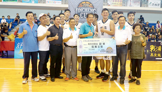 經過九天的激烈賽事之後,二○一八(第二十七屆)金城盃籃球邀請賽終於在昨(二十九)日落幕,在最後一場由金酒對戰汕頭大學的精采比賽結束後,今年的所有賽程也宣告圓滿成功;今年在菁英組方面,冠軍金盃由金酒籃球隊抱走。金城鎮長石兆瑉與大家相約明年,他希望藉著這項比賽,促進兩岸籃球界的交流,藉著雙方以球會友,來提升地區籃球運動的水平。 金城盃籃球賽閉幕典禮,在最後一場比賽結束之後,於昨日下午四時許,在金門縣立體育館內舉行,閉幕儀式由金城鎮長石兆瑉主持,金寧鄉長陳成勇、金城鎮民代表會主席陳天成、副主席郭永隆,金城鎮民代表張含麗,金門縣兩岸籃球促進會理事長李尚傑等貴賓出席,並且擔任頒獎人,頒發獎盃給予前幾名的隊伍,祝賀獲獎的隊伍。 金城鎮長石兆■表示,由於選手們精湛球技的展現,以及熱情的比賽,讓地區鄉親可以看到高水準的比賽,在暑假期間可以有很棒的暑期籃球饗宴。金城盃在地區的籃球賽事當中,其技術水平相當高,他也感謝選手們讓鄉親度過很棒的夏天,他也感謝各家贊助商以及鄉親的熱情參與,還有鎮公所員工們全體總動員,讓比賽圓滿順利的結束,他更期待來年金城盃的高水準球賽。 金城盃籃球邀請賽已邁入第二十七年,今年亦邀請一○六學年度大專籃球聯賽公開一級球隊高雄師大、中州科大、臺灣師大及臺藝大等球隊,還有金酒公司冠名贊助SBL的金門酒廠籃球隊。大陸部分,則有實力堅強籃球勁旅山東農實業大學、汕頭大學及山西大學等球隊組成菁英組同場競技,兩岸大學籃球勁旅共聚金門一展球技,打造今年夏天最盛大的兩岸大學城市籃球賽,讓金門在地的球迷朋友一睹高競技水準的籃賽。 今年的「金城盃籃球邀請賽」從二十一日開賽以來,歷經九天的比賽,共計有四十場精采的賽程,最後一場賽事是由金酒對戰汕頭大學的冠軍戰,在該場比賽結束之後,正式宣告落幕,冠軍為金酒籃球隊,並贏得獎金新台幣五萬元及獎盃一座。亞軍為臺灣師大,獲得獎金新台幣四萬元及獎盃一座。季軍則是汕頭大學,獲頒獎金新台幣三萬元及獎盃一座。最佳團隊精神獎為:台灣藝大、山西大學、高雄師大、中州科大、山東農業大學各頒發新台幣一萬元。最佳五人獎則為臺灣師大張立杰、臺灣師大陳又瑋、汕頭大學朱松瑋、臺灣藝大張家禾、臺灣藝大張幃翔,最有價值球員為金酒王泰傑。