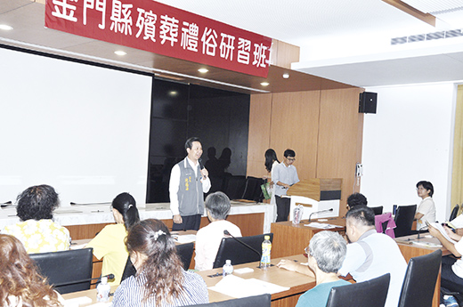 由金門縣政府主辦,金城鎮公所、金湖鎮公所、金沙鎮公所、金寧鄉公所、烈嶼鄉公所、殯葬管理所、南華大學生死學系協辦的「金門縣107年度殯葬禮俗研習班」,昨(24)日起一連兩天,分別在金門縣政府新聞發佈室及金門縣殯葬管理所各舉辦一場次,首場次縣長陳福海特別到場向本縣殯葬服務業、公立殯葬設施從業人員、社會志工等報名參與人員致意。 陳福海說,傳統殯葬禮俗雖隆重但過程繁複,近年來隨著社會環境的改變,許多儀節更已不合時宜,如何藉著相關研習課程,讓殯葬禮俗更多元、更簡化,相對顯得重要。尤其,金門在地的殯葬禮俗,一直以來都有自己的特色,但閩南傳統習俗和台北還是有些差異,藉著更多元的學習,我們希望,好,還要更好,不足的部分,也期待藉更多的傾聽,一一加以突破,只要是好的,一定要往好的方向走。 陳福海也感性的說,一張選票一世情,他是金門優先的金門縣長,鄉親給他的付託,他永留心中,也會盡更大的努力,全力建構一個「藍、綠、紅」都支持的金門,為金門打造更永續發展的基礎,讓鄉親過更好的日子,實踐《禮運大同篇》的理想境界,「使老有所終,壯有所用,幼有所長,鰥寡孤獨廢疾者,都能得到最妥當、最關切的照顧。」 縣府民政處處長陳永明也指出,近年來資訊科技的發達,造成社會結構鉅大轉變,也衝擊傳統價值觀念與社會規範,特別是生命禮儀習俗,因為人情的淡薄與互助觀念的欠缺,產生扭曲、變質,衍生出許多弊病與不當風俗。本次研習班期望能藉由教育訓練及雙向交流,輔導地區民眾參與喪禮證照考試,倡導殯葬禮俗核心價值,端正不當禮俗,使地區喪禮禮儀更莊嚴,不僅提昇殯葬服務品質,也讓長者走得更有尊榮。 昨日首場次研習課程,主辦單位特別聘請南華大學生死所教授李慧仁及孫智辰等葬儀專家學者講授喪禮證照考試準備策略,輔導地區民眾考取禮儀師等喪禮相關證照;同時進行家、公奠祭拜等殯葬禮俗課程及實務演練,期能建立人生後事應有之尊嚴,並使從業人員、民眾能有正確之觀念與實務。 民政處表示,這項研習班課程採上課鐘點制,學員全程參與,縣府將發給研習證書。本次研習免費參與,公務人員可登錄12小時研習時數。昨日有逾60位殯葬從業人員及社會志工出席參與。