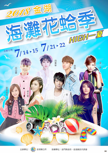 金湖海灘花蛤季昨(22)日晚間是最後壓軸的「high一夏演唱會」,金湖鎮公所邀請到田亞霍、劉明湘、梁一貞、鼓鼓、信等藝人,演唱多首膾炙人口的熱門歌曲,並穿插大型魔術表演,吸引上千人到場,將成功出海口廣場擠得水洩不通,鎮公所工作人員也發放會發光的充氣加油棒給入場觀眾,讓觀眾能夠邊聽歌邊揮舞,就像在看演唱會一樣。 「high一夏演唱會」於昨晚7點起在成功出海口廣場舉辦,由梅東生主持、藝人田亞霍打頭陣演唱,緊接著是劉明湘、梁一貞、鼓鼓等藝人,許多歌迷是特地從台灣或大陸來到金門追星,更有歌迷在下午就來到現場佔位置,手拿著自製海報和發光標語,就是為了近距離聽偶像唱歌。壓軸則是由人氣最知名的信樂團主唱「信」,約在晚間9點半左右登場,其成名曲包括千年之戀、海闊天空、天高地厚、一了百了、死了都要愛等,信昨晚演唱多首知名歌曲,將現場氣氛炒到最高點。 金湖海灘花蛤季在昨日畫下句點,接下來將由「2018QUEMOY國際海島音樂季-金寧后湖場」接棒,於7月25日、7月28日、8月1日、8月4日晚間7點到10點,共4場不同主題的演唱會,將分別邀請謝金燕、詹雅雯、梁文音及陳芳語等重量級藝人齊聚金門開唱瘋夏日。