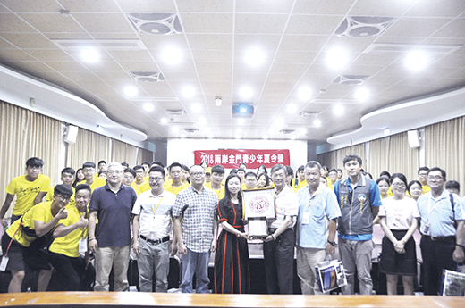 「2018愛戀花崗岩島~兩岸金門青少年夏令營活動」開始了!來自兩岸三地72位金門鄉親暨青少年學生返鄉參加這項為期五天四夜別具意義的活動。昨日下午該一行在前往金門縣政府參訪拜會時,並受到秘書長林德恭代表縣長給予熱烈歡迎。 參加兩岸金門青少年夏令營學員,大陸方面由福建省金門同胞聯誼會副秘書長方冷、副會長張亞倫領軍,台灣則由台灣金門同鄉會總會副會長陳復寶領隊。 夏令營開訓儀式,昨日下午五時二十分起在縣政府多媒體簡報室舉行,教育處副處長陳家輝、科長許能麗、社會處科長張至文等與會。 林德恭秘書長在介紹金門歷史沿革時,也以全球有超過百萬金門人,希望大家以身為金門人為榮。他也對金門是個歷史悠久的地方,無論是人才輩出、閩南式建築保存維護、僑鄉文化和自然生態,以及重要軍事史蹟和設施據點,都成為吸引觀光客重要資源,是期兩岸多交流往來,青少年學生也能深入金門多走走看看,以能留下深刻美好印象,同時提供縣府寶貴建言。 林秘書長也熱烈歡迎金門鄉親後代青年子孫返金尋根探源、認識原鄉,他表示金門歷史文化淵遠流長,是個很有故事性、也很有人情味的好地方,希望青年朋友好好把握這趟難得的機會,到處走走看看,用心的認識自己的原鄉,相互學習、相互成長,鼓動青春氣息,提振文化生活視野,結交更多的朋友。 福建省金門同胞聯誼會副秘書長方冷表示,金門鄉親居住在大陸福建一帶有接近一萬人,其中居住在廈門有五、六千人最多,並有九個金門同胞聯誼會成立,這項活動期透過多互動、體驗和交流,來增進彼此情誼。 2018兩岸金門青少年夏令營活動,於7月22日在金門熱烈拉開序幕,計有來自兩岸三地72位金門鄉親暨青少年學生返鄉參加這項為期五天四夜別具意義的活動。 為促進兩岸實質文化、情感交流,提高兩岸三地金門鄉親子弟青少年教育文化認知,開拓人際關係,增進青少年情感。金門縣政府教育處結合台灣金門同鄉會、福建省金門同胞聯誼會共同辦理是項每年一次維繫多年深具文化尋根意義的活動。 「兩岸金門青少年夏令營活動」始辦於2004年,每年辦理一次,參加對象為台灣、福建、金門等兩岸三地金門鄉親青年子弟,其目的在於以讓來自兩岸三地的金門青年子弟學生,能相互交流聯誼及參訪采風各地名勝,深入探訪故鄉民情風俗,培育青少年學生對傳承親情的認同與了解。 今年夏令營活動在金門,自7月22日起至7月26日止,計有來自大陸福建、台灣、金門各地金門青年學生72人來金參與,活動以「金門文化巡禮˙海陸空探索大體驗!」為主,行程將走訪大小金門具有閩南文化及軍管時期的特色景點,並安排軍事體驗、文化尋根、品嚐特色小吃等活動,藉此了解金門歷史源流、地理環境、傳統文化等,增加青年朋友對金門原鄉的認識和印象。 來自兩岸三地參加今年夏令營的72位金門青年學生分別來自台灣、福建、金門等地,他們現在分別就讀各大學、高中職暨國中。他們有就讀台灣│逢甲大學、勤益科大、台北市立大學、金門大學、朝陽科技大學、中山大學、龍華科大、雲林科技大學、中正大學、高雄師範大學、中華大學、淡江大學、屏東大學、交通大學、清華大學、南崁高中、中山工商、新竹高工金門農工和大陸│福州大學、福州理工學院、青島理工大學琴島學院、福建師範大學福清分校、天津工業大學、北京師範大學海滄附屬學校、廈門工商旅遊學校、廈門雙十中學海滄附屬學校、武夷學院、齊齊哈爾技師學院、燕山大學、泉州實驗中學、泉州市第六中學、南安市厚德中學、惠安第三中學、晉江市南嶽中學、福建省惠安縣開成職業中專學校、中南財經政法大學經濟學院、湄洲灣職業技術學院、晉江市安海中學、泉州實驗中學、泉州城市工程技術學校、廈門理工學院、西南大學、甯德師範學院、福安市第一中學、甯德師範學院等校學生。