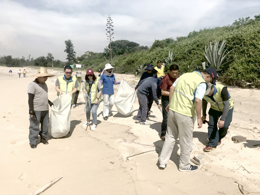 金門縣養護工程所舉辦107年環境教育並結合海洋活動,先於所內欣賞環境教育影片後,再兵分兩路赴南石滬海域及金湖鎮峰上咕力岸海灘,結合峰上社區發展協會攜手清除海漂垃圾,並根據ICC國際淨灘表格統計分類,再協調金湖鎮公所清潔隊垃圾車清運處理相關海漂垃圾。 養工所人員不畏烈日在峰上咕力岸海灘淨灘,清理各式海岸垃圾,冀望能為環境及生態保育盡一份心力,維護海洋乾淨,讓海洋資源永續經營,本次咕力岸淨灘活動共動員該所員工及社區民眾70餘人次,清理資源約垃圾500公斤、非資源垃圾300公斤,成效著實可觀。 養工所所長關嘉■表示,年度環境教育除了解目前世界環境之現況外,為了喚醒對海洋的認識、保護及永續活動,結合當地社區民眾走出戶外,同步展開海漂垃圾清除活動。