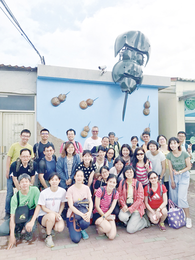 國立金門高級中學和教育部普通高級中學生物學科中心學校—國立新竹高級中學於7月12日至16日共同舉辦為期5天4夜的教師專業成長研習營,主題為「多元選修課程及地方學課程」,活動於昨日完美結束,來金參與研習營的教師紛紛表示此行令人難忘,獲益良多。 本次活動是為因應即將上路的「十二年國民基本教育之新課綱」,發展學校本位課程,注重在地特色的精神所規劃,吸引來自全台高中生物領域的種子教師蒞臨金門。期間由金門高中金色水岸社群教師進行「金色水岸—金門海岸線」課程模組演示分享,該課程曾榮獲106年度全國高中跨領域選修課程設計競賽之表揚。 活動的另一個重點則是進行金門特色生物及地質環境的考察。金門雖是蕞爾小島,卻有十分豐富的生物相,以及有別於台灣本島的生態環境資源,例如由金門子弟中央大學陳慶瀚副教授所介紹「金門地質故事」及「探訪北山海岸」揭開序幕,後續還安排一連串的課程包括有「看見水獺」、「活化石—鱟」……等,並在金門縣水產試驗所、金門國家公園,以及在地生態專家莊西進老師和洪清漳老師的大力協助下,實地考察金門植物園中特色生物、青年農莊一窺栗喉蜂虎、走訪烈嶼貴山海岸探尋豐富的潮間帶生態。 此外,本次參與活動的學員們也親身下海擎蚵、剖蚵,體驗一日蚵農的辛勞。在這5天4夜的課程中,來自臺灣各地的生物科種子教師親眼見到金門獨特的栗喉蜂虎、戴勝、水獺、三棘鱟、曼氏孔盾海膽和眾多精彩的潮間帶生物蹤影,甚至藍眼淚也現蹤,讓此行近30位的教師們驚嘆連連,大呼不虛此行,被金門豐富的生態之美所懾服。