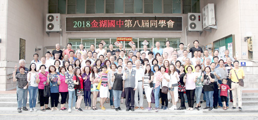 金湖國中第八屆學生近日在金湖鎮公所舉辦同學會,校友們是在民國61年至64年間就讀金湖國中,至今已畢業43年,包括金湖鎮長蔡西湖、金湖鎮新市里長吳志成、社會處長陳世保、正義國小校友會理事長陳森照等人都是同屆同學。畢業校友們大家出席踴躍,包括其家人等共有112人出席,縣長陳福海也到場致意。同學會上大家茶敘憶舊,聊聊以前求學趣事,並在鎮公所3樓高歌一曲,十分歡樂。