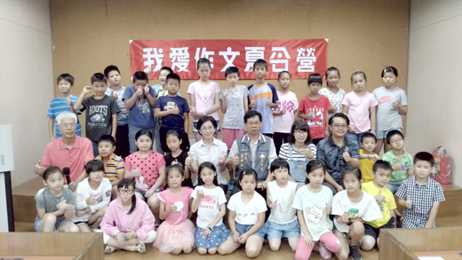 「2018年暑期我愛作文夏令營活動」基礎班於7月16日上午在文化局演藝廳3樓會議室正式開班,本次授課對象為縣內國小三年級到六年級的學生,共計招生31名學童。 本次活動的指導方式是針對作文學測給與必要的指導,以及培養作文的基本能力,同時鼓勵學生敢說、敢表演、敢展現自我,並對閱讀養成自動自發的好習慣,也樂意在老師的指導下進行文字創作。 指導老師主要是由具有多年授課經驗的蔡發色老師所擔任,蔡老師本身是文化局志工,16年來積極參與及協助推廣藝文活動,對於指導兒童閱讀與寫作方面都有相當豐富的經歷與熱忱,多年來從事寫作教學,指導過無數學子,深獲家長與學生的喜愛與信任。此外,還有第一次參與作文夏令營活動的江芳瑜老師協助授課,江老師本身是烈嶼鄉西口國小的教務組長,雖然是第一次參與作文夏令營的指導,但長期協助推動閱讀教育,對指導學生們的閱讀寫作方面更是懷抱熱忱。 活動當日,文化局局長呂坤和也到場勉勵學童要認真學習,同時以淺顯易懂的方式向學童們解說學習作文的重要性。
