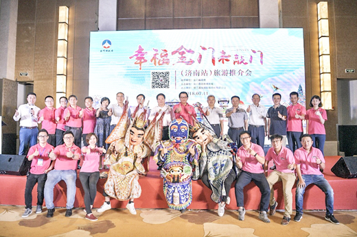 由金門縣政府觀光處、廈門市旅遊發展委員會、廈門市台灣事務辦公室、金門縣旅行商業同業公會、金門觀光特產協會、昇恆昌股份有限公司、金湖大飯店、金門單車旅遊及元翔(廈門)海岸有限公司共同組成「旅遊推介團」,於7月9日與11日赴山東省青島市與濟南市辦理「幸福金門來敲門」金門旅遊推介會活動。 縣府觀光處表示,本次推介會從「視、聽、說、品、觸、心」多元化打造「樂遊金門」實景體驗現場,整場推介會採用一篇章、一主題、一推介、一互動方式,帶領青島、濟南旅行商與媒體感受「幸福金門」,並進一步結合廈門旅遊推介活動,現場逾200多名旅行商及媒體與會,獲得當地政府、旅遊部門及台辦大力支持,讓會議顯得熱鬧非凡,尤其與會業者更深入瞭解金門旅遊資源及赴金自由行相關政策。 推介會現場也設置「發現金門攝影展」,除了讓嘉賓看到金門的美,更透過「拍拍有禮│創意拍照區」將金門的美散發到微信朋友圈,擴大宣傳;另設立「博餅體驗」、「拼圖體驗」及「風獅爺彩繪」等,讓嘉賓透過互動來瞭解金門文化;此外,也準備「金門美食自助區」,邀請大家領略金門高粱酒的「香、純、甘、冽」,品嚐美味貢糖、牛肉乾等特產,帶領嘉賓遇見「舌尖上的金門」;會中並安排金門民俗表演「三太子」,與當地表演「高山青」進行了一場文化的交流。 與此同時,縣府觀光處更以「金門‧尋城趣」、「金門‧島之韵」、「金門‧閩台緣」三大篇章,詳盡介紹金門旅遊亮點,大力宣傳「金囍假期」、「親子樂遊探索幸福金門」、「金門迎城隍季」與「QUEMOY國際海島音樂季」等主題活動,並說明目前兩岸便捷的旅遊路線與蒞金型態,讓與會人員認識金門、了解金門,進而愛上金門。 此外,金門縣旅行商業同業公會結合金廈旅遊特色,根據山東省客源市場需求,為山東省市民量身定制「來廈門‧遊金門」十大精品旅遊線路,涵蓋濱海休閒、經典探索、文化探尋、生態養生、戰地體驗、街巷美食、特色研學、會展商務、夕陽紅、浪漫蜜月等十大主題「暢遊雙島」特色線路,為山東省市民以一站式玩遍廈門、金門兩地。 縣府觀光處表示,金門保存完善的閩南、僑鄉、酒鄉文化、戰役史蹟資源與特有免稅政策,金廈兩門各自擁有不同的旅遊特色,近年金廈兩門旅遊部門致力推動金廈旅遊全方位發展,並自105年起共同打造「金廈旅遊節」,以活動結合旅遊模式,鼓勵旅行業者組織更多大陸居民「到廈門,遊金門」之全新旅遊體驗。