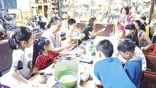 讓孩子以雙手捏出無限的創意!一項由金門縣警察局所主辦的「一○七年暑期青春專案│陶俠舞春風」捏陶研習營活動,於昨(七)日分成上、下午兩個梯次舉行,兩場次的活動總共吸引了六十位地區的學生報名參加,在陶藝老師的指導之下,學習捏陶藝術,用自己的創意型塑自己獨一無二的作品出來,昨日正好也是周休假日,不少家長陪同著自己的寶貝,營造一起創作和學習成長的美好回憶。 金門縣警察局辦理的這場「陶俠舞春風」捏陶研習營,於昨天上午九時起,分成兩梯次假浯州陶藝坊舉辦,研習營活動的參加對象為金門縣的各國小三年級至六年級以及國中學生,這項免費課程相當吸引學生們的青睞,兩個梯次共計六十個名額全數額滿。上午梯次於九時展開,下午梯次則是從二時起開始上課,研習內容包括手拉坏DIY體驗、貓頭鷹花盆製作以及彩繪等課程。 昨日上午九時起展開的上午場次,金門縣警察局副局長張俊揚、金城分局分局長郝心誠、金湖分局分局長張文峰、縣警局少年隊隊長林要治、副隊長李益杰、救國團金門縣團委會總幹事徐國華等人,也特別到場了解活動狀況。 昨日的陶藝課程,特別邀請到地區知名的陶藝大師王明宗、以及浯州陶藝經理、金門縣文創協會理事長黃金郎現場指導,透過親自教學讓參加的學員了解捏陶藝術,並一步步做出擁有自己風格的貓頭鷹盆栽,而透過指導老師的詳細說明以及詳細步驟解說下,從眼睛塑型到杯身花紋裝飾等,學員們捏著陶土,或搓或壓,各個樂在其中。 昨天的研習課程除了捏陶體驗,製作陶藝貓頭鷹花盆以及彩繪課程之外,張俊揚指出,活動還融入了「反霸凌、反幫派、反吸毒、反暴力、反援交」以及「關懷愛滋病、拒菸、拒酒、拒嚼食檳榔」等主題,希望讓青少年朋友們在輕鬆玩樂之餘,也能從中獲取保護自身安全的相關法律常識。 而昨日在學員動手創作過程中,少年隊也特別邀請到畢業於金門高中,就讀於國立台南藝術大學應用音樂系的陳珮茹現場進行音樂演唱,學員們一邊手作藝術品,一邊聆聽欣賞著美妙的演唱,也讓活動現場充滿了藝術的氛圍。