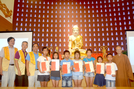 2018年佛光山金蓮淨苑佛光兒童夏令營,昨日上午舉行開營典禮,兩岸三地一百三十位小朋友歡喜參與三天的動靜態課程。金蓮淨苑住持永勤法師勉勵小朋友行「三好」,多做好事、多說好話,同時要心存感恩心,提升正向能量。國際佛光會金門協會會長余平禧祝福大家滿載而歸。 「三好兒童夏令營」,從昨日起展開一連三天的動靜態課程,上午八點四十分在金蓮淨苑大殿舉行開營典禮,永勤法師、余平禧會長帶領一百三十位「小小菩薩」唱三寶頌,揭開活動的序曲,國際佛光會金門協會督導楊清國、洪永善、金蓮淨苑義工群、五十位佛光青年夥伴、學生家長一同參與,小朋友歡喜的氣氛,洋溢整個大殿。 今年「三好兒童書法比賽」得獎學生,亦在昨日開營典禮中接受表揚,永勤法師、余平禧會長、和督導楊清國、洪永善先後頒發獎金獎勵高年組、中年組前三名及優勝學子,第一名將獲頒獎狀乙張,獎金三千元;第二名獎狀乙張,獎金兩千元;第三名獎狀乙張,獎金一千元;優勝獎狀乙張,獎金五百元。各得獎作品並在淨苑二樓文化藝廊展出。各組獲獎人員:高年組:第一名:開瑄國小蔡子英。第二名:卓環國小張羽彤、金湖國小陳少儀。第三名:古寧國小楊宜靜、金沙國小洪子喬、金湖國小陳宜妤。優勝:卓環國小李洛彤、卓環國小洪于晴、金湖國小李昱柏、西口國小洪友羚、中正國小李易謙、西口國小姜竣宸、古城國小董軒佑、卓環國小方柏瑞、古城國小董宜亭、開瑄國小陳芷靚、卓環國小林柏嘉、賢庵國小盧琬蓉、金沙國小黃靜薇、金鼎國小黃思語、上岐國小洪妤瑄、中正國小翁睿閩。中年組:第一名:金鼎國小楊宸安。第二名:金沙國小黃綺晴、金沙國小張珈毓。第三名:西口國小洪子非、西口國小孫子晴、中正國小陳姿鳳。優勝:卓環國小陳品樺、卓環國小林秉誠、開瑄國小楊沛宸、金沙國小何品蓁、卓環國小洪子鈞、卓環國小洪翊軒、開瑄國小陳采淵、金湖國小陳妤安、金湖國小陳頻妤、金沙國小張嘉尹、中正國小黃璽安、中正國小楊苡辰、金沙國小洪紫睿、西口國小方郁茹、湖埔國小楊琅。 永勤法師希望透由書法比賽,鼓勵小朋友從小學習書法國粹,從寫書法中體會生活美學涵養,養成良好的生活品德,淨化心靈。 永勤法師指出,為宣揚星雲大師提倡「做好事、說好話、存好心」的三好運動,佛光山金蓮淨苑、國際佛光會金門協會連續十一年辦理「三好兒童夏令營」,推廣「三好」學習,存好心、說好話、做好事,盼全民行三好,幫助需要幫助的人。 永勤法師說,營隊課程很豐富,包含佛門禮儀、大會舞、團康遊戲、手工藝製作等動靜態活動,也安排前往海濱公園進行定向越野戶外運動,讓小朋友有多元學習的機會。最後一天下午二點舉行成果發表會,讓小朋友分享學習的過程。 永勤法師希望來自廈門、金門、台灣的學員經過三天的活動洗禮後,能從團體活動中,學習與人相處、合群包容,尊重自己與他人;從生活教育中,培育感恩、惜福、慈悲善良的人格;從學習中增長智慧、廣結善緣,而真正做到「說好話、做好事、存好心」的三好兒童。 永勤法師感謝金蓮淨苑義工群的付出和幫忙張羅餐點,也稱讚這一群樂當義工的佛光青年,永勤說,很多從小參加佛學營,一路成長,從學員、隊輔師、義工一路感恩,很欣慰他們懂得付出服務。 余平禧會長希望學員將三好「做好事、說好話、存好心」九字真言帶回去跟自己的家人、好朋友、好同學分享,同時要心存感恩心,感謝老師教悔、家人的照顧,及永勤師父、婆婆媽媽的義工、大哥哥、大姐姐,提供服務和學習的機會,祝福大家滿載而歸。 永勤法師也是營隊營長,她親自為隊輔披掛上值星官帶,叮嚀小隊輔陪同「小菩薩」參與動靜態的學習課程,藉由團體生活,加強孩子三好有品的道德提昇。