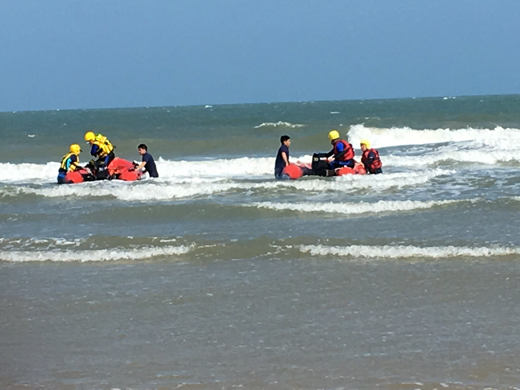 為提升消防人員救生應變技能,消防局金寧分隊及金城分隊結合觀光處駐點后湖救生員在后湖海濱公園海域進行水上救生組合演練,強化各項救生技能、熟悉裝備使用,提高救援效率。 隨著夏天來臨,金門海域沿岸開始出現戲水人潮,適逢於后湖沙灘舉辦國際海島音樂祭,后湖沙灘湧入大量人潮,后湖海濱公園海岸線狹長且多為沙灘,每到下午時分及假日,時常看見海岸沿線人潮蜂擁、攜家帶眷或是呼朋引伴,戲水、撿拾貝類、釣魚等多元水上活動。金寧分隊指出,民眾若不諳水性或到危險海域沒有救生人員地區,隨時可能發生意外,溺水遺憾悲劇事件。 這項演練情境假設有2名溺者因不諳水性及潮汐,受困於后湖黑巖上,其中1人嘗試返回岸上而遭海流捲走,在海上載浮載沉,由觀光處駐點后湖救生員發現後通報,消防局立即派遣金寧及金城分隊人車共警消10名、2輛救護車及2艘IRB救生艇前往救援,並同步連絡相關單位同步出勤。經現場指揮官與觀光處駐點救生員了解相關情資後,立即進行任務分配,由金寧、金城IRB救生艇分別前往海面進行快速搜索及救援黑巖受困者,並同步通知觀光處駐點人員出動IRB救生艇及沙灘車協助救援,最後將2名溺者救上岸後並持續給予適當之救護處置,隨即由金寧、金城分隊救護車將溺者送往金門醫院救治。