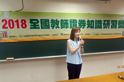 由臺灣證券交易所主辦,證基會承辦之2018年「全國教師證券知識研習營」金門場日昨在國立空中大學金門學習指導中心辦理,約50位金門地區的教師及鄉親熱情參與研習,充實的課程也讓學員們都感到獲益良多。 研習營開場首先由主辦單位證交所市場推廣部組長王麗真致詞並歡迎學員,隨後由縣府參議許寬致詞,除嘉勉學員參加研習的學習熱忱外,並感謝證交所本於公益與回饋社會的理念辦理研習營。 當天研習內容包括「證券市場介紹」、「了解投資工具特性及交易概念」、「常見經濟指標及財經新聞資訊解讀」,最後一堂課是由前金門縣警察局刑事警察大隊大隊長洪俊義主講「金融詐騙手法介紹及反詐騙宣導」課程,一整天充實的課程讓學員都感到收穫滿滿。 課程中並舉辦「參加評量拿獎金」活動,共有5位學員獲獎,證交所並邀請得獎人參加8月8日於臺北101大樓內「臺灣證券交易所資訊展示中心」辦理的結業典禮。