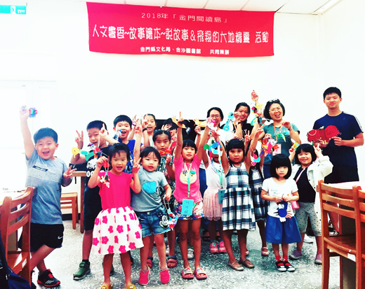由金門縣文化局、金沙圖書館共同策辦之「金門閱讀島」系列活動登場,首場「說故事&飛翔的大地精靈」3日起一連三天共計3梯次吸引百人參與,學童聽故事達人〈娥媽〉說故事觸動對鳥類的好奇心,在獸醫師徐曉萍的介紹下進一步探討各種鳥類的科普知識,最後並動手、動腦發揮想像進行彩繪,完成專屬的鳥兒造型彩繪,學子欲罷不能紛紛表示,還想參加! 金門縣文化局、金沙圖書館攜手辦理「金門閱讀島」系列活動,共規劃兩場活動分別是,「說故事&飛翔的大地精靈」7/3至7/5。以及「說故事&彩繪風獅爺」,將於7/10至7/12上午9點至12點,在金沙圖書館二樓登場。 首場次活動3日起一連三天假金沙圖書館二樓舉辦,吸引許多學子參與,現場由故事達人〈娥媽〉以活潑生動的鳥類故事開頭,小朋友聚精會神聆聽,也觸動對鳥類的好奇心;接續由金門縣野生動物救援暨保育協會獸醫師徐曉萍,帶領學童進一步認識各種鳥類的科普知識,現場並展示二隻「魚鷹」及「貓頭鷹」標本,讓學子透過講解、觀察等,進行一場有趣又好玩閱讀體驗。最後,小朋友也運用各種不同材質、顏色的紙張以及蠟筆、廣告顏料等著色工具,發揮個人想像力,彩繪出一隻隻色彩繽紛的鳥類造型作品,並掛在造型樹上展示,學子除了一一和自己的作品合影留念外,也欲罷不能,希望隔天還能再參加。 而系列活動第二場「說故事&彩繪風獅爺」,將於下週二起登場,每天一梯次,對象為三至六年級學生,將以風獅爺為主軸,由說故事達人〈童麗羨〉、民伯陶藝術空間〈吳惠民〉透過說故事以及陶藝製作傳授方式,帶領學子認識風獅爺的故事以及揮灑創作出屬於自己個性、特色、創意的風獅爺花瓶。主辦單位歡迎符合年紀的學子報名參加,洽詢電話353354金沙圖書館。