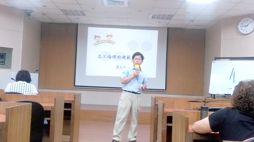 「金門縣一○七年志工督導訓練」昨假文化局三樓舉行,由新竹市志願服務協會創會會長傅正泰(見圖)與眾志工分享投入志工的經驗,希望志工們能重視志工倫理,能對他人的需求提供關懷與協助,也希望有更多的人能夠加入志工這個行列。 社會處副處長許美鳳表示,能夠參加領導志工訓練的,代表投入志工行列很多年,參加領導訓練必須經過基礎、進階、特殊、專業一系列的訓練課程,這是不簡單的。現在志願服務的參加人數有三千六百多人,政府機關員額有限、力所未逮,復以現在要推動公共服務,這些服務都需要人力,加上現在勞基法加班增加許多限制,人力不足的部分就以志工補足。現在要推展長照服務,長照服務是未來施政的主軸之一,不光是長照的服務,未來社區也需要,將來廣布長照系統,以現有的專業人力是不足的,所以我們需要吸納志工。 傅正泰指出,高齡化社會的問題需要重視,未來不只被服務的對象是高齡,連志工也是高齡,十年後可能會面臨缺志工的問題,因此需要新血的投入。政府能力有限,民間資源無窮,當有需要,志工服務即可投入。許多人都懷念以前那個經濟才剛起飛,但是人與人之間願意互相幫忙,即便是向隔壁借米煮飯。成立志工隊的原因在於希望回到互相關懷、互相幫助的那個年代。團體活動中,倫理的建構非常的重要,如果能多給予而不是索求、多付出而不是享受,一個組織就能繼續下去。 依據《志工倫理守則》所示,作為志工有幾項守則需恪守:誠心奉獻,持之以恆,不無疾而終;付出所餘,助人不足,不貪求名利;專心服務,實事求是,不享受特權;客觀超然,堅守立場,不感情用事;耐心建言,尊重意見,不越俎代庖;學習成長,汲取新知,不故步自封;忠心職守,認真負責,不敷衍應付;配合志願服務運用單位,遵守規則,不喧賓奪主;熱心待人,調和關係,不惹事生非;肯定自我,實現理想,不好高騖遠;尊重他人,維護隱私,不輕諾失信;我願珍惜資源,拒謀私利,不牽涉政治、宗教、商業行為。