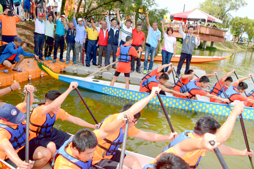 二○一八金門縣第十屆端午節龍舟競賽昨(十八)日假金寧鄉的古寧頭雙鯉湖登場,總共有社會男子、社會女子及鄉鎮的廿支龍舟隊下場比賽,競爭賽況頗為激烈。金門縣長陳福海、縣議會議長洪麗萍主持開幕儀式,縣議會副議長謝東龍及鄉鎮長參加,陳縣長、洪議長共同為龍舟開光點睛與為龍舟競賽鳴槍,展開為期一天的各輪比賽。另,在端午節龍舟競賽現場及雙鯉湖畔除了各項活動進行外,也有精彩才藝表演及美食園遊會,觀眾及遊客熙來攘往,炒熱過端節的氣氛! 端午節龍舟競賽開幕典禮在上午九時開始,陳縣長致詞表示,在下雨天裡,對於龍舟賽成績可能有影響;但金門島近來鮮少下雨,湖庫蓄水量僅可在供一百天的民生用水。所以,這場雨對金門很重要,也感謝龍舟競賽選手帶來及時雨,讓金門鄉親都可用到好水,「感謝你們、謝謝你們!」 陳縣長指出,一項活動的舉辦,要感謝很多單位的齊心協力,尤以金門縣立體育場在端午節龍舟競賽的付出,「你們辛苦了」,感謝你們!還有教育處、警察局員警、金大同學、衛生醫護人員、古寧頭雙鯉古地關帝廟管委會。同時,他表示,到早上還在討論要不要停賽,但這場雨是及時雨,帶來金門邁向未來更美好的及時雨,一年一度的龍舟賽照常舉辦! 今年的龍舟競賽邁入第十屆,陳縣長感謝歷任縣長累積十年的能量;去年舉辦龍舟賽,就說要改善比賽環境,並放很多心思,計投資七千多萬,在明年的龍舟競賽將擴大舉辦。陳縣長也期勉龍舟競賽選手說,今天我們團結在一起,以划龍舟的精神,共同努力,建構一個更幸福的島嶼! 陳縣長也宣示說,金門地區辦活動,要重視小朋友的參與,今年的龍舟競賽寫生比賽就吸引國中小暨幼生近五百人報名參加,家長更要帶進來參與、分享、體驗五月五端午,大家同樂!祝福龍舟賽選手拿到更好的比賽成績、更亮眼,在第十一屆更搶到好成績,並高喊好不好,台下選手也齊喊好! 縣議會議長洪麗萍也問候鄉親、選手大家好、大家早!並表示,雖然下著雨,可是我們還是要有運動家的精神,堅守崗位,也藉此機會代表縣議會祝此次龍舟競賽圓滿成功! 洪麗萍指出說,端午節是紀念愛國詩人屈原憂國憂民的情操,並期勉大家藉由參與端午節龍舟賽鍜練身體,強健體魄,祝參賽隊伍和選手有好成績,也祝鄉親在端節家庭幸福、身體安康! 金寧鄉長陳成勇也感謝陳縣長近年來對於端節龍舟競賽的支持,今年是第十屆、十全十美;而且,透過端節龍舟比賽場地的改善,明年擴大舉辦,兩岸三地齊聚古寧頭雙鯉湖一較龍舟競賽技藝高下,也帶動金門和金寧鄉的觀光產業繁榮。 開幕典禮最後進行龍舟競賽運動員宣誓,由金門農工學生吳毓婷代表全體運動員宣誓:「我們將秉持公平、 公正、公開的態度,克遵大會一切規章,並服從裁判之判決,以勝不驕敗不餒的運動家精神,參與這次賽會。」她宣誓完後,現場選手也掀起一陣的歡呼聲,陳縣長也讚賞吳毓婷優秀表現說:「很棒、很棒!」這時,主持人也要大家划出幸福成功的人生,叫我第一名! 陳縣長、洪議長和金寧鄉長陳成勇、金城鎮長石兆瑉、金湖鎮長蔡西湖、金沙鎮代理鎮長蔡其朝、金酒董事長呂瑞泰等人,他們也來到雙鯉湖畔為社會男子組龍舟第一組競賽鳴槍。 端午節除了激烈的龍舟競賽外,現場還有民俗才藝表演活動,項目包括祥獅獻瑞、扯鈴、寧鼓隊、民俗舞蹈(黑色精靈)、獅隊表演、跑旱船、舞蹈、節令鼓、舞蹈、腰鼓陣,參與單位有天震堂、金鼎國小、金寧中小學、古寧國小、古城國小、鳳翔社區、金門浯江舞蹈團、開瑄國小、KDC金門流行舞蹈團(幼兒組)、金沙婦女會,炒熱端午過節氣氛,提倡正當休閒活動,促進地區民俗才藝技能發展。 另外,在雙鯉湖畔配合舉辦有安全射箭射擊、端午謎會、「五月五·慶端午」寫生比賽的各項活動,為慶祝端午佳節及提倡正當休閒活動,提升學生繪畫創作能力,並藉由親子參與,寓教於樂,促進家庭、社會和諧安康。(相關新聞刊二版)