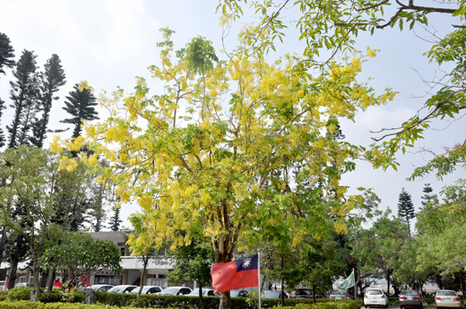 外來的栽培觀賞植物阿勃勒(波斯皂莢),在金門也能看得到。阿勃勒開花,花色鮮黃亮麗,真是好看。 阿勃勒樹原產於錫蘭、印度,屬豆科落葉型喬木,其最大特色就是先開花後長葉,鮮黃花串倒掛樹梢的獨特景觀,遠望,像極了風鈴,十分有趣!若微風輕吹,阿勃勒花搖曳飄下的景緻,就像落下黃金雨一般浪漫,現在到金城國中校園也能欣賞到。