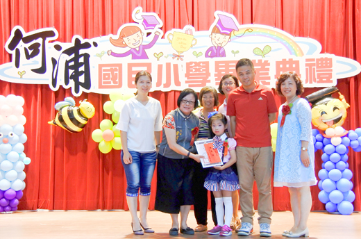 何浦國小國小部第66屆暨幼兒園第41屆畢業典禮昨日舉行,歡送43位畢業生。典禮在合唱團美聲中揭開序幕,與會貴賓頒獎嘉勉績優學子,在校生、畢業生在舞蹈表演中一展長才,而會中隱藏版「鋼琴王子」王靖翔演出,讓全場眼睛為之一亮。縣府參議葉媚媚勉學子,學習如馬拉松賽,要不斷努力、堅持向前行。校長曾秀玲也祝福畢業生「努力就找得到機會」! 何浦國小昨日上午8時30分起假學校活動中心舉辦畢業典禮,歡送國小部22位、幼兒園21位畢業生。縣府參議葉媚媚、縣議員陳滄江、李應文、金沙鎮民代表會副主席吳有家、代表王石堆、金沙鎮公所社會課課長楊雅芳、金沙國中代理校長王任益、述美國小校長劉界宏、安瀾國小校長張志猛、湖埔國小校長蔡玉羨、何浦國小校友會理事長王水彰、何浦國小家長會會長馬自壯、副會長何國祥、榮譽會長廖麗婷、金沙國中家長會會長王國泰以及全體師生及畢業班家長等齊聚一堂,向畢業生獻上祝福。 典禮中安排一段隱藏版的鋼琴演出,由畢業生王靖翔表演「Faded」,採排中沒有的橋段,讓師生眼睛為之一亮也成為場中令一焦點。現場貴賓應邀頒獎嘉勉績優學子,由王郁、錢婕瑀榮獲縣長獎;周群穎獲省政府獎,另有各領域學習績優獎。全體畢業生也由六年級周君穎、幼大班錢婕瑀代表,自校長曾秀玲手中領過畢業證書。 縣府參議葉媚媚轉達縣長對畢業生的祝福,她首先感謝所有老師的用心,為孩子開闢舞台一展長才;也以馬拉松賽勉勵學子要持續努力、堅持向前行,開創美好未來。何浦國小曾秀玲勉學子「努力就找得到機會」。 畢業典禮在校歌歌聲中劃下句點,緊接著登場的是懇親遊藝會,學子以班級為單位載歌載舞好不熱鬧。而在各界鼎力支持下,今年國小部畢業生同樣每人有一台腳踏車。