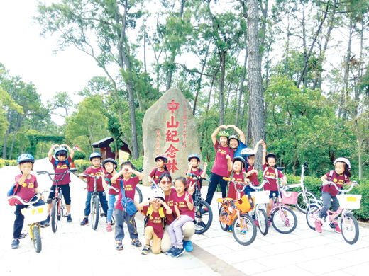 鳳凰花開,蟬聲唧唧,是離別的時節,也是孩子們最快樂的夏日時光。述美幼兒園中大班學生不讓六年級學長專美於前,昨日在校長劉界宏及三位老師的帶領下,在中山林挑戰近4公里單車騎行,農試所烤肉、體驗滑草樂趣,晚上並於學校隔宿露營,在畢業前一天完成自我挑戰,帶著幸福滿溢的果實,準備迎向小學。 述美國小即將於今日晚間辦理畢業典禮,歡送國小部及幼兒園畢業生,對將邁入小學的幼生而言,充滿著期待。再且,六年級大哥哥完成自行車環台壯舉,讓幼生心裡相當崇拜,人小志氣高的他(她)們,配合學習主題「運動GO!GO!GO!」與幼小銜接結合,經過三週的練習,昨日展開近4公里的自行車挑戰。 述美附幼13位幼生,昨由校長劉界宏領軍,園主任吳馨寧、畢業班老師陳高馨、莊蕙菁帶領下,上午九時起到中山林,在中山林自行車故事館志工蕭鳳玉等帶領下,完成4公里騎行,並且到農試所進行野炊烤肉等,學子在沒有家長陪同下,完成畢業前的挑戰。孩子昂首挺胸的形容,我長大了,我要上小學了!讓在場師長深感驕傲。 述美幼兒園中大班13位學生,昨日不僅在全程沒有家長陪同下,完成一連串相當耗費體力的運動考驗,孩子沒人喊累,興高采烈的在老師以及金門農工古貝童車團帶領下,準備著隔宿露營,在畢業前一天豐收汗水淋漓、幸福滿溢果實。 述美國小表示,時光飛逝孩子不知不覺的『長大了』,從初踏入校園的生澀樣子到自信地完成一連串挑戰自我的活動,除了藉以強化孩子們獨立與懂事的心,也感謝金門農工古貝童軍團協助支援,更重要的是家長們對學校的信任與配合,讓孩子們能夠有難忘的畢業挑戰,也歡喜的邁開了成長的第一步。