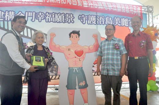 活菩薩!金三榮開發建設股份有限公司基於社會公益,於101年捐贈一般型救護車一輛給消防局,董事長陳含英女士昨日再捐贈消防局一組自動體外心臟電擊去顫器(AED),配置在當初捐贈的那輛救護車上使用。副縣長吳成典主持捐贈儀式,推崇陳董事長是一位活菩薩,以身作則,拋磚引玉,號召世人加入捐贈行善行列,藉以充實金門地區緊急救護能量,讓救護人員能有性能更好的裝備可以使用,搶救更多緊急傷病患生命。 衛生福利部統計近年國人十大死因,心臟疾病往往排名前三名,而心臟疾病所造成的死亡,許多是以突發性心跳停止的形式發生,而利用AED對患者施以電擊,能夠讓心臟恢復正常跳動。AED是Automated External Defibrillator的英文縮寫,中文名稱叫做自動體外心臟電擊去顫器,開啟電源後會有自動語音說明及圖示引導,使用操作很簡單;救護車上配置AED,可做為搶救到院前心肺功能停止(OHCA)患者的利器;若能在黃金搶救時間內給予電擊,就能大幅提高急救成功率。金三榮建設公司捐贈的這款AED屬專業救護使用機種,具有LCD螢幕,可即時顯示患者心電圖、操作時間及電擊次數,提供救護人員參考,能偵測患者心率,自動判定是否需要電擊,若有需要也可以進行人工強制電擊,與公共場所常見的一般型AED比較,規格等級較高。 消防局這項捐贈儀式於昨日下午三時卅分假金寧消防分隊車庫後方廣場舉行啟用典禮,副縣長吳成典代表陳縣長到場主持,陳董事長含英偕同林董事榮輝出席,各界貴賓、消防同仁、義消及新聞媒體記者等參與見證,受到消防局長楊肅凱、副局長王世祿等人歡迎。陳董事長將AED交到副縣長手中,接著一起將貼片貼在模型上,宣布正式啟用,隨後一同按下開關,象徵這台AED將再次點亮人的心,吳副縣長並代表陳縣長回贈感謝狀,最後眾人合影留念。 吳副縣長致詞推崇陳董事長是一位活菩薩,以身作則,拋磚引玉,號召世人加入捐贈行善行列,造福鄉親,他代表陳縣長表達衷心的感謝,希望消防局善用這組AED,讓其發揮最大功效,搶救更多寶貴生命。 陳董事長表示,金三榮當初捐贈救護車時,法令並未規定一般型救護車應配置AED,而是加護型救護車的裝備,但她一直放在心上,後來聽說法令修正,規定一般型救護車也要配置AED,所以就主動聯繫消防局,希望再捐贈1組AED,讓這輛救護車的裝備齊全,功德圓滿。