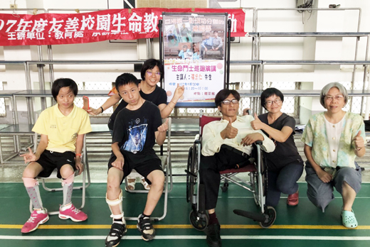 永不放棄、夢想起飛!「亞洲第一對成功分割的連體兄弟」哥哥│張忠仁先生,日昨到金沙國中分享他的生命故事。他雖行動不便,在場和兩位學生比伏地挺身並且侃侃而談他如何樂觀積極面對生命的考驗,克服死亡的恐懼和社會歧異眼光,並藉以告訴學子珍惜每一天時光,能活著就是一種幸福。他也勉勵學子努力進取,發揮生命的潛能,讓沙中學子深受鼓舞。 金門地區107年度生命教育典範學習計畫│生命鬥士巡迴演講,今年邀請到「亞洲第一對成功分割的連體兄弟」的哥哥│張忠仁先生,日昨到金沙國中以「永不放棄、夢想起飛」,向沙中學子分享自己的生命故事,並藉以勉勵學生珍惜時光、努力進取,像他面對生命的挑戰一樣,讓生命充滿奇蹟和感動。 張忠仁於會中,以當年新聞媒體報導內容分享手術分割前,醫生說活不過5歲;手術後可能活不到10歲、20歲,但是如今他已經41歲了,他強調他很珍惜每一天活著的時光,能活著就是一種幸福。 當現場學生問到:「是否曾經有自殺的念頭?」張忠仁先生回答「當然有。」接著他並告訴學生指出,成功分割後雖然保住了一命,但是有許多的後遺症,常常需要開刀,除了身體上的病痛、生活上的不便、經濟的壓力,同時也要接受社會大眾歧視和異樣的眼光。台上台下不只問答互動,他還與台下的兩位男同學比賽伏地挺身,讓在場的學生們驚呼連連,也感受他樂觀與積極的一面,深受鼓勵。