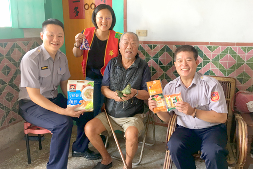 端午節是中國人傳統節日之一,每逢佳節倍思親,獨居長者期待陪伴的心情在臉上表露無遺,金城警分局烈嶼分駐所與華山基金會站長宋凱玲特別送上應景暖呼呼的粽子及各方捐助的生活物資給烈嶼地區獨居長者們,讓長者們感受到警方及華山基金會為民服務關懷獨居長者的熱情。 金城分局指出,各分駐(派出)所警勤區同仁利用家戶訪查勤務方式,除了落實預防犯罪外,更重要的是查察轄區內弱勢人口,尤以每月定期關懷獨居長者為要,這些獨居長者有的行動不便,長時間無親友探視,甚至有的身邊已無子嗣,經濟來源僅依靠榮民及老人津貼,生活相當困苦,非常需要政府及社會機構介入關懷,予以協助。 金城分局烈嶼分駐所長楊懷璽指出,隨著社會人口少子化、高齡化、子女外出就業等因素,造成獨居長者的問題,亟需社會重視及關切。在外打拚的年輕人容易疏忽了住在家鄉的老人家,導致現在有許多的老年人,處於獨居的狀態,這種狀況在烈嶼地區尤為明顯,雖然現在已經有許多的社福機構開始重視此社會議題,但是老年人真正希望的是精神慰藉及有人陪伴,不再孤獨,也許只是一句平常的問候,或是一小段陪伴的時光,都能令長輩感受到生命尊嚴和存在的幸福感。 金城分局分局長郝心誠表示,民眾若有發現弱勢族群需要幫助,可連絡警政、社政或社福機構適時予以關懷協助,發揮「人溺己溺,人飢己飢」的精神,一起幫助社會上的弱勢族群,讓社會充滿更多的愛心與人情味。