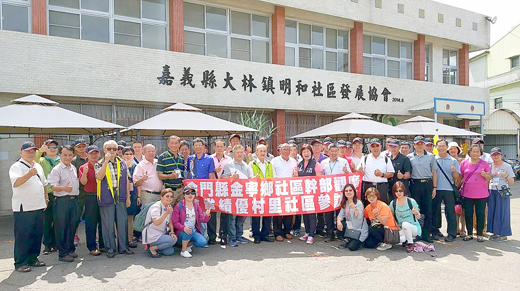 金寧鄉長陳成勇帶領轄區各社區發展促進委員會委員、各社區幹部組成參訪團,赴台展開四天三夜觀摩台省績優社區活動圓滿賦歸,六日拜訪嘉義縣大林鎮,也觀摩獲得全縣績優的明和社區發展協會進行社區互訪、交流學習之旅,陳成勇希望透由實地的觀摩,相互交流營造社區的經驗,分享彼此的成果。 鄉公所社會課積極輔導轄區十七個村落成立社區發展協會,來凝聚居民的向心力,一起關心生活家園,也協助鄉公所推動鄉務工作。社會課也會定期邀請社區幹部座談,鄉長陳成勇除聽取各社區幹部提出的意見和建言,來提供協助。此外,社會課也辦理走動式績優社區觀摩活動,由鄉長陳成勇親自領軍觀摩其它鄉鎮的績優社區,帶領全鄉所有社區發展協會的幹部赴台「取經」。陳成勇希望透過觀摩交流,借由他山之石,將卓越社區的優點加以學習及改進,讓社區工作能與時俱進、精益求精,提供居民更好的服務。 鄉公所於五日安排社區幹部前往彰化縣福興鄉番婆社區觀摩取經,六日參訪社區也是經電腦篩選在社區評鑑獲得績優的嘉義縣大林鎮明和社區發展協會作互動交流。陳成勇一行人到明和社區「作客」,受到大林代理鎮長葉和平、縣議員吳思蓉及社區幹部的歡迎,雙方並互贈紀念品、旗幟交流聯誼,同時聽取社區總幹事分享推動農村再生的經驗歷程。 大林代理鎮長葉和平表示,嘉義縣政府於103年起推出「做伙吃有厝味」老人食堂,近年來大力推動,愈來愈盛行,目前已開辦有五十家食堂,在106年衛福部社區評鑑時成績更是名列前茅。並指出,嘉義縣關懷老人家沒有上限,食堂食材補助今年也已提高,希望能有更多的社區和團體投入老人家的用餐服務,讓「關懷今日的老人,就是照顧明日的自己」的敬老風氣融入日常生活。 陳成勇說,金寧鄉的安岐、盤山兩社區於年度的全縣社區評鑑,也獲得績優社區的肯定,但好還要更好,兩社區的幹部也和其它社區幹部一起來觀摩學習,到績優明和社區互訪、交流。也感謝明和社區發展協會理監事幹部、志工,熱情的歡迎金寧鄉好朋友到訪。陳成勇希望社區發展經驗成熟的鄉鎮能多彼此交流,形成良性競爭,居民共同參與社區營造,打造出幸福的社區。 陳成勇推許明和社區「做伙吃有厝味」老人食堂、長照2,0及關懷照顧等的推動落實,都是金寧社區學習的對象。期許各社區發展協會幹部動起來,汲取社區優點,帶入社區,結合居民一起努力來提升社區新氣象,讓社區更充滿活力。 大林鎮明和社區總幹事分享推動農村再生的心路歷程,讓社區幹部知道如何發現與推動社區的特色產業,也藉由學習績優社區成功的發展經驗,進而增廣見聞並做為社區未來推展之參考方向。
