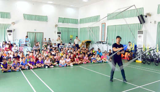 FOCA福爾摩沙馬戲團《奧列的奇幻旅程》金門場售票演出,全數銷售一空,未演先轟動。劇團巡迴地區11所校園分享推廣表演藝術,日昨分別到述美、多年、正義及安瀾辦理,演出夢神奧列一角的黃冠榮現場示範「立方體」等特技橋段,展現舞蹈底子及良好身段,並放映該齣作品片段,讓現場學子驚聲連連,並不吝惜以掌聲及尖叫聲回應,讓劇團感受金門學子的熱情。 FOCA福爾摩沙馬戲團將首齣兒童馬戲作品《奧列的奇幻旅程》帶到金門來演出,即將於今天(六月九日)晚間七時三十分起假文化局演藝廳登場,是地區難得一見的售票演出。活動未演先轟動,據悉上周仍有少許票,經該劇團結束美國巡迴演出後,馬不停蹄抵金,兵分兩路展開校園巡迴推廣後,票已銷售一空。不過,透過校園分享,團員介紹特技動作,引用演出的宣傳片段帶師生認識馬戲作品,同時也在現場示範,不僅讓學子眼睛為之一亮,也透過這樣方式把劇團的理念以及表演藝術帶到離島偏鄉。 FOCA福爾摩沙馬戲團行政經理周盈婷表示,本於劇團經營、表演的堅持,同時也希望能兼顧觀賞品質,此次《奧列的奇幻旅程》金門場售票演出(優惠票價)。團隊成員對於表演具有高度熱忱,且都是專職表演工作者,平日長時間投入練習、採排,假日則展開巡迴演出,彼此也練就良好默契,這更是表演完美呈現所必需。而為了能夠推廣表演藝術,接續去年假澎湖演出後今年將作品帶到離島金門來,並且於5日起巡迴11所校園推廣分享,學生反應熱絡,發言踴躍,展現有別於都市的熱情,許多的舉動都讓團員深受感動。