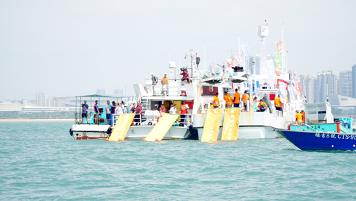 為了讓金廈海域漁業資源永續發展,兩岸漁政單位於數年前就開始攜手合作,每年合作放流數十萬尾的魚苗,藉人工方式來復育海洋,而兩岸漁業單位於昨日上午再度攜手,在小金門檳榔嶼附近海域,共同放流多達七十七萬餘尾的魚苗,當中更不乏有「黃魚」以及「黑鯛」等的高經濟魚種,以實際行動宣示雙方共同維護海洋資源的決心。 兩岸的漁政單位約在昨日上午近十一時左右,在檳榔嶼附近海域展開今年度的「金廈兩岸聯合放流」活動,由金門縣政府建設處副處長王垣坤與廈門海洋研究所所長周立波等人一同帶領所有的工作人員進行放流行動。一隻隻出生不到三個月的小魚苗,似乎早已迫不急待,在充氧的水袋及養殖桶內不安份的游動著,最後是在兩岸漁業單位的工作人員的攜手協助之下,小魚苗順著漁梯滑入金廈海域,重新回歸大海的懷抱。 為了更能符合金門附近海域的生態環境,提高魚苗在海洋中的存活率,為此金門縣水產試驗所特別早在半年前就開始著手進行選種,並且在經過長達三個月左右的研究與培育,成功孵育了午仔、黑鯛、鱸魚、平鯛等魚類各三萬尾,而廈門市海洋漁業研究所方面,則是提供了有黃鰭鯛以及大黃魚等魚類,此次放流魚苗超過七十七萬。 金門、廈門兩岸聯合放流的活動從一○四年就開始合作,至今放流的魚苗尾數累積已達上百萬尾了,雙方合作其目的就是為了讓漁業資源日益枯竭的金廈海域,盡早恢復生機。以前的釣友曾經有段時間都釣不到黃魚,但是近年來的反應是有所改善,釣到的機會增加不少,這也顯示出雙方對於改善海洋資源的決心與成果。 經過四年左右的努力,透過漁民的回饋,表示能釣到黃魚、鯛魚等高端魚種的頻率及數量已逐漸增加,由此可知,兩共同復育海洋生態資源,已經開始顯現出成效。不過水試所同時也呼籲漁民朋友,近期請避免於放流處以及周邊海域進行強度漁撈,讓放流魚苗能有成長的空間與時間,方能有效增益漁民的獲利。