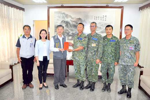 端午節將至,縣府秘書長林德恭昨(8)日代表縣長陳福海展開勞軍行程,感謝軍方、海岸巡及金門醫院等相關單位長期對後送工作的支援,林德恭親自到各單位致贈加菜金,也預祝弟兄們和工作人員端節愉快。 端午節即將到來,為了感謝軍方、海岸巡及金門醫院等單位過去一年對於地區醫療後送的支援,林德恭昨日陸續拜訪軍機場、第九海岸巡防總隊、金門海巡隊、金門醫院,慰勞辛苦的軍方弟兄及工作人員,並致贈加菜金。 林德恭在衛生局副局長李金治的陪同下,依序拜訪各單位,除致贈加菜金、感謝相關人員工作辛勞外,也關心軍方及海岸巡弟兄的生活作息。林德恭表示,目前金門還是缺少不了後送工作,特別感謝金門守備大隊機步營每週二、五協助載送急重症病患赴台就醫;感謝海巡二線支援夜間載運烈嶼鄉病患緊急醫療轉診到金門醫院就醫,及安寧返鄉等載運事宜;支援營醫療連長期支援本縣大型活動醫護及例行後送病患接送;岸巡隊積極查緝走私維護本縣治安;而金門醫院為本縣唯一醫院,肩負金門在地鄉親、台商及旅客之醫療照護重任。 衛生局表示,107年1至4月,金防部機步營協助每周二、五軍機載送病患赴台就醫96人次;支援營醫療連長期支援本縣大型活動106年計30場次執行醫護工作。另為感謝空勤總隊協助本縣載運緊急傷病患空中運輸轉診作業,礙於空勤總隊第二大隊駐地於台中,致贈加菜慰問金以匯款方式辦理。