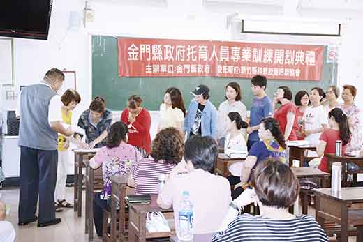 金門縣一○七年度托育人員專業訓練班金湖班昨日率先開班授課,一班計有四十位學員,且是全額滿,尚有候補學員等著遞補,由此可見托育人員專業訓練班受到歡迎的程度。縣府社會處處長陳世保在主持始業式時表示,參加托育人員專業班學員,上完一百二十九小時,通過考試及拿到結業證書之後,如當收費保母,幼兒的父母就可以申請每月二千元的托育補助,後續若再考取技術士證照,每月就可申請三千元的托育補助費,減輕家長育兒負擔及提升育兒服務品質。 縣府社會處表示,為充實本縣托育人力及提升托育人員專業技能,以提供優質、普及之托育服務品質,營造友善之托育環境,本(107)年度委託辦理托育人員專業訓練計五班次,每班招收四十人,計招收二百人,總訓練時數計一百二十九小時,上課時間為每週六、日上午八時三十分至下午五時三十分,並自六月九日(周六)起陸續開課(起迄時程約三個月),為方便縣民選擇就近地區上課,上課地點分別在本縣五鄉鎮,分梯次辦理。 今年的托育人員專業訓練班訓練課程,係委託新竹縣科教技藝訓練協會承辦,該協會除在台灣地區承辦托育人員課程外,且具有相當的教學經驗。其中,金湖班於昨天上午八時二十分,假國立金門農工職校率先舉辦始業式及開班授課,縣府社會處處長陳世保主持;接下來,金城、金沙、縣政府、金寧班將自今日起陸續開班。 陳世保也宣佈說,行政院今年五月十六日公告爺爺奶奶在家裡照顧自己的孫子,將自今年八月一日起改申請育兒 每月二千五百元;但若考取技術土證,仍可領取托育費用每月三千元。同時,陳世保並鼓勵各學員結業之後,可以投入托育人員就業市場,緩解找不到托育人員的現象,期望學員能好好把握機會,努力學習,預祝大家順利通過學習取得結業證書,一切順利及身體健康。 縣政府社會處說,參訓學員經結訓考試及格,且符合出席上課時數者,將發給結業證書,取得結業證書後,可申請加入衛生福利部社會及家庭署之托育人員登記管理資訊系統,擔任托育工作;凡照顧未滿三歲幼兒(需實際居住本縣),家長都可以申請托育費用補助每月新臺幣二千元,若具有單一級保母人員技術士技能檢定資格,家長即可申請每月新臺幣三千元的托育費用補助。