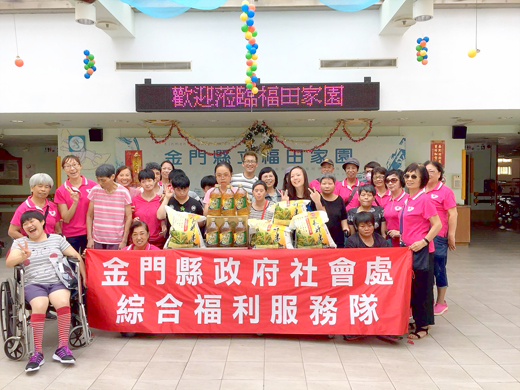 端午節粽飄香、愛分享!金門縣一○七年社政志工端午節慰問活動於昨日展開,金門縣政府社會處綜合福利服務隊一行二十餘人,在社會處長陳世保、副處長許美鳳的帶領下,昨日分別來到晨光教養家園、福田家園、松柏園與園民一起歡唱舞蹈同樂,也致送日常食用的白米、沙拉油慰問物品,提前過一個愉快的端午節! 目前,全縣有十二個目的事業主管機關推動志願服務,其中縣府社會處轄屬加入祥和計畫共計五十九個志願服務團隊,餘皆由各目的事業主管機關合計共籌組三十四隊,志工人數逾三千八百四十一人;縣府社會處也希望有更多的人加入志工行列,對金門地區社會祥和產生正面的影響。 縣政府社會處綜合福利服務隊一行,於昨天上午九時,他們先來到位於金沙鎮轄內的晨光教養家園進行端午節慰問活動;由社會處長陳世保帶領服務隊人員致送晨光教養家園日常食用的白米及沙拉油慰問物品,讓園民可動手做粽子和吃到美味的粽子,跟大家一樣過歡喜的端節。 接著,社會處綜合福利服務隊員高唱一首「我們都是一家人」,在歡樂的節拍裡,陳世保、許美鳳與服務隊員帶領晨光教養家園園民一起舞蹈動起來,場面十分的溫馨和愉快,也感受到服務隊捎來的端節暖暖的愛心及祝福! 隨後,社會處綜合福利服務隊又分別來到位於金湖鎮的福田家園、松柏園,探訪和關懷每位園民的生活與健康狀況,陳世保和服務隊也送上端節慰問物品,祝福田、松柏園民端午節愉快,也慰問工作人員的辛勞。 縣府社會處表示,志工領域遍佈在各個機關單位,且每個志工隊屬性不同,業務繁重,表現有目共睹;尤以縣長陳福海對於志工服務區塊十分重視,未來將增加舉辦志工訓練,讓有意加入志工的退休人員取得志工資格,加入志工行列服務。 另,志願服務團隊年度工作有辦理三節慰問獨居老人及關懷活動、五月至十一月辦理年度志願服務人才培力訓練計畫、每季發行浯島心志工情志願服務季刊、四月至六月辦理用愛關懷行動深耕~學童假日伴讀活動,預計六月至八月辦理輔導並查核志願服務運用單位對志工服務之管理、八月份舉行年度志工趣味競賽活動、九月份辦理志願服務年度督導評鑑工作、十月份辦理長者關懷活動、十一月至十二月辦理金門縣年度績優團隊及志工表揚大會;還有志工時間銀行、 志願服務巡迴輔導的志願服務團隊年度工作。 此外,因應明年衛生福利部針對志願服務評鑑指標,社會處也提案修正金門縣辦理今年社政志願服務績效評鑑實施計畫草案,目的在瞭解本縣志願服務運用單位推展志願服務工作之成果,並達到充分運用志工人力資源,弘揚社會互助之精神;而且藉以促進志願服務之實踐,服務經驗之連結傳播,及倡導志願服務之理念更臻落實。