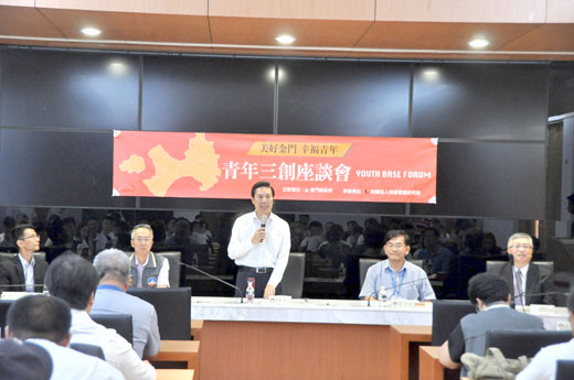 縣長陳福海昨日主持「美好金門-幸福青年」-青年三創座談會強調,根據統計金門常住人口約有五萬八千人,在年青人是金門的希望,如何透過盤整資源來打造金門更好發展條件,並鏈接兩岸,就要聽聽年青人想法,以期找資源用方法來推動落實。並宣示在金門就業市場不是很大,政府將帶頭協助和鼓勵青年創業,給年青人更多機會,局處首長也要走出去了解青年創業困難和協助解決問題。 陳縣長表示,三十年來為圓一個金門夢,自己上任三年多來,就在為解決水電和兩岸關係,積極努力;而禮運大同篇的使老有所終,壯有所用,幼有所長,鰥寡孤獨廢疾者皆有所養,是他心念的努力目標。 縣長陳福海也期金門青年辦公室趕快成立,結合金門青年三創服務中心運作,並在政策上大力投資青年創業,各局處也要拉高政策支持配合。並讓金門走出去,更多人走進金門。 首場座談會昨日下午四時起至六時五十分,在縣政府新聞發佈室舉行,並由財團法人商業發展研究院所長黃兆仁,就金門青年三創(創意、創新與創業)服務平台作簡報。縣府參議翁自保、建設處長張忠民、副處長王垣坤、行政處長呂清富、財政處長許志忠、觀光處長陳美齡、社會處長陳世保、文化局副局長黃雅芬、教育處科長許能麗、農試所所長李廣榮、文化園區管理所所長盧根陣、金城鎮長石兆瑉、工商策進會總幹事王中聖,以及受邀請的公司、協會、團體青年代表四十餘人與會。行政院新創基地營運長邵文正也列席指導。 邵文正並期能協助金門青年三創服務中心的早日成立,讓更多力量結合,青創服務很快能展開。 財團法人商業發展研究院指出,金門縣政府重視青年就學、就業與創業,為強化金門縣青年事務整合政策規劃及研訂發展策略,建立青年公共事務參與及溝通機制,培育金門青年未來的競爭力,由三創服務中心, 協助及服務青年。其中,在協助金門青年創意、創新與創業(以下簡稱三創)事務方面,金門縣政府將成立金門三創一站式服務據點,直接服務青年。屆時,請青年朋友多多蒞臨、指導與運用。而為了使金門三創一站式服務中心更能貼近金門青年朋友的需求,特於今日舉辦縣長與青年朋友對接座談會,瞭解青年朋友的需要,並期望能快速對接。 預計分別在9月份與明年初舉辦「兩岸青年創新創業競賽」及成果發表會,營造兩岸青年朋友共創與交流的機會。並將在臺北商業發展研究院設「金門三創服務中心第二辦公室」,成為旅台金門青年與創投業者連結窗口。另外,將在瓊林蔡嘉種紀念館成立「金門青創基地」,成為青年朋友共創與交流的園地。 與會青年提出盤點青創人口和類別、金門三創服務中心需要對的人力配置、誰來營運三創服務中心、需要透過實戰過程來因應、政府不需要給釣竿,只需做大方向擴大市場讓魚更多;政府需要接地氣,了解業者真正需要;擴大展銷廠商參與;貸款申請限制放寬;市場機制需要人流;廢棄碉堡或坑道提供酸白菜業者製作並成為觀光景點;十大伴手禮的品項增加;縣府結合青年創業做行銷;觀光行銷待加強;集中力量朝哪些產業發展青創;賦予古厝多元的經營方向,不僅只侷限做民宿;養牛業者在台金價格差異大,希望縣府能在技術多輔導和資源挹注;縣府補助開專業課程以利青創業者參與研習……等。