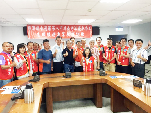經濟部水利署第八河川局基於防災業務應變需要,去(106)年於金門縣成立防汛護水志工第十分隊,成員十人,分布在大小金門各鄉鎮,遇有災害能立即通報。第八河川局昨天邀請兩位國內聞名災防專家來金門為第十分隊金門志工上課,強化金門地區防汛志工,防災應變知能。 金門地區五月七日的一場豪大雨,所有下雨量是歷年之冠, 雨量宣洩不及,造成大小金門淹水。金門縣防汛護水志工第十分隊立即反映,第八河川局立即成立三級開設,並將反映的相關情資,以及災害照片報中央應變中心處理。 為強化金門地區防汛志工,防災應變知能,第八河川局昨天邀請行政院災防中心參議馮德榮、第十河川局副局長謝明昌(前水利署災防中心主任)兩位國內聞名災防專家為金門志工上課,講述「颱風豪雨災害防救應變作為」及「智慧水利防災之思維與作為」,加強防汛、防災應變知能。 另,第八河川局正工程司許志興講授「水利防災災情通報案例說明」與副工程司陳兆慶說明「河海堤一般使用申請案件作業流程及相關法令宣導」,希望金門防汛志工能為提高防災的知能,及運用現有通訊軟體,將地方的災情能迅速讓中央及地方政府即時掌握,以利救災資源的調度與應變。