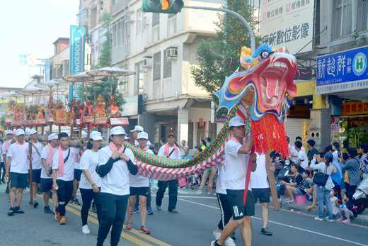 昨(二十六)日是農曆四月十二日,也是「浯島邑主城隍遷治三百三十八週年」,昨日一早開始,城隍廟鑼鼓喧天,熱鬧滾滾。而午後的後浦小鎮更是萬頭攢動,城隍爺巡安的路線上,城區街頭巷尾盡是擠滿了信眾,各個手持一柱清香,虔誠的默禱,一起迎接城隍爺出巡。而昨日成千上萬位來自大陸、台灣以及在地的宮廟、神明、藝陣和金城四境等陣頭,還有各地的善男信女隨香其後,沿途的鑼鼓聲、鞭炮聲不絕於耳,神輿、旗輦飄揚,還有各個陣頭表演,掀起迎城隍慶典的最高潮。 迎城隍慶典已經成為金門地區最為重要宗教活動,為了讓更多人了解金門的傳統文化,金城鎮公所更用一個月的時間舉行「二○一八年金門迎城隍‧浯島宗教文化觀光季」,活動終於在昨日進入最高潮,從下午開始,共有來自兩岸三地的宮廟,包含台灣全國各地的城隍廟,以及大陸各地宮廟、藝陣,加上在地鄉鎮的宮廟和城區四境參與隊伍,以及旅居台灣跟海外的鄉親一起來共襄盛舉,讓原本寧靜的後浦小鎮湧現滿滿的參拜信眾。 慶祝「浯島邑主城隍遷治三百三十八週年」,重頭戲就在昨日下午開始的「城隍爺出巡繞境」了,在昨日下午一點左右展開,由金門縣長陳福海、金門縣議會議長洪麗萍、副議長謝東龍、立法委員楊鎮浯、台開集團董事長邱復生、昇恆昌副總白國良等人特別到場並虔誠為出巡的城隍爺抬轎或是扶轎,恭敬的陪著城隍爺全程繞境巡安。 浯島城隍廟榮譽理事長周浯斌表示,今年參與迎城隍的人數相當多,共有大陸有三十家、台灣四家宮廟跨海參加,總人數超過一千五百餘人,迎城隍每年的人數都一直在成長,而迎城隍的主軸是「傳統復古」,因此廟方也希望把舊的遊行文化保留下來,因為現在參與的陣頭相當多,大家都會增加一些新元素,讓遊行變得熱鬧與現代,但傳統還是會保留。依據東南西北四境輪流值年的習俗,負責值年的宮廟則要走在陣頭的最後,今年是由西門里值年,基本上四境排列的陣頭是不變,只是會根據外來的陣頭加入,順序有所不同。 關於後浦的城隍文化,周浯斌說明,城隍廟興建於明朝洪武二十年(西元一三八八年),至今已有六百三十年,而在清康熙十九年(西元一六八○年),當時的總兵將原本位於金門城的「古地城隍廟」之城隍爺遷治至後浦,至此每年舉行慶祝遷治活動,與一般宮廟都以神明的聖誕千秋日慶祝不同,迎城隍是以遷治活動為主。 昨日(農曆四月十二)重頭戲「浯島城隍繞境巡安活動」是於昨日下午一時左右,台金廈各路神明、陣頭、表演隊伍都於城隍廟會師,將城隍廟內外擠得水洩不通,而城隍爺的神輦所到之處,都可看到兩旁虔誠的信眾持香頂禮,更有不少信眾一路持香跟隨轎輦之後。 與往年一樣,今年的繞境也是熱鬧非凡,各地宮廟神明、陣頭都到場共襄盛舉,巡安遊行隊伍,依序為:紅綵、遷治紀念旗、了亞、托燈、馬上吹(大鼓吹)、范謝將軍盟會、顏柳將軍盟會、恩主公、關聖帝君、蘇府四千歲、旗牌執事瓜鍻、大鼓吹(中正國小)、董牌爺盟會、文武判官盟會、南管樂隊、香燈、鄉老、道士、香擔、神駒、十音、天女散花(中正國小)、邑主城隍爺、遮陽涼傘、城隍粉閣、隨香善信、台開洄瀾宮、迎懷堂、舞龍舞獅(中正國小)、廈門城城隍廟、金沙腰鼓隊、蜈蚣座協會、國樂隊(中正國小)、全國城隍聯誼會進香團、金門縣公揹婆協會、大陸宮廟進香團、馬六甲城隍廟、金門媽祖會蓮花大鼓陣、金門媽祖會腰鼓陣、高職農工隊、南門境進香團、北門境進香團、東門境進香團、西門境進香團等多支繞境隊伍。 每年的迎城隍盛會,均是由金城四境輪流值年,今年度則是由西門里值年;而昨日的巡安繞境的隊伍各有特色,連綿數公里之長,繞境的路線也是依循著傳統的香路進行。自城隍廟請出城隍爺之後,便在眾人抬轎扶轎簇擁下,從城隍廟出發,往網寮方向前進,行經禹帝廟、天后宮、水門睢陽府、光前路、南門福德宮、中興路、莒光路、靈濟寺、莒光路一段、代天府、珠浦東路、模範街、昭德宮、北門福德宮、北鎮廟、中興路、民生路、縣政府、民權路、中正國小、中興路中段、關帝廟、莒光路一七一巷、外武廟、光前路六十一巷、紅大埕,整個巡安繞境的路線大約三點八公里左右,最後長長的繞境隊伍返回城隍廟後,在陣陣的鞭炮聲中也宣告活動圓滿結束。在昨日熱鬧的隊伍當中,除了傳統藝陣公揹婆、十二婆姐等演出之外;許多台灣、大陸方面宮廟陣頭也一同參與遊行,隊伍隆重之中還帶著莊嚴的氣氛。沿途更有不少攝影愛好者或文史工作者穿梭遊行隊伍,以攝影機或相機捕捉紀錄繞境的珍貴畫面。此外,昨日下午的氣溫超過三十度,烈日當頭加上數小時的遊行,對於參加繞境者而言是體力持久戰,因此不少公私立單位、團體紛紛在隊伍經過的路上設攤分送冰涼茶水,為大家消暑。(相關新聞刊三版)
