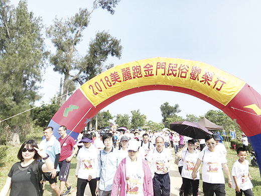 「2018金廈美麗跑之金門民俗歡樂行活動」昨(13)日於金寧鄉湖下一營區熱鬧登場,來自兩岸三地四百多名愛好「美麗跑」之跑友們齊聚一堂,悠閒漫步在金門南山、北山一帶,欣賞動人的閩南戰地風光,為週末假日帶來健康氣息。 此次活動打造慢生活概念,吸引金廈兩地熱愛運動休閒與旅遊攝影的民眾跑出熱情跑出健康,活動於昨日上午假湖下一營區前停車場舉行啟動儀式,包括縣議會秘書長李增財、縣府參議翁自保、工策會總幹事王中聖、觀光處副處長李銘培等人出席與會。 活動由金門縣政府觀光處、廈門市旅遊發展委員會指導,元翔(廈門)海岸公司、廈門市旅遊協會運動旅遊分會、廈門廣湃文化傳媒有限公司與廈門日報遊周刊主辦,廈門市觀光國際旅行社有限公司與金門縣萬吉旅行社承辦。活動路線則從湖下一營區起點,一路走過石蚵海灘—北山聚落—南山聚落—雙鯉湖—終點站古寧頭和平廣場,約計6公里左右,別出心裁的「美麗跑」,除了結合兩岸觀光旅遊契機,也呈現金門在地文化多樣性,同時主打環湖,去年環「古崗湖」,今年環「雙鯉湖」,讓陸客能邊走邊認識金門的島嶼風光與村落美景。 縣府觀光處表示,此次活動結合了低碳、自然生態,以運動休閒帶動觀光旅遊,融合金門特有的戰地秘境,加上「環湖」跑,逐漸打造「金廈美麗跑」成為知名品牌,讓金門成為健康休閒旅遊之最佳場域,同時金門還有很多湖畔與美景,未來亦持續等著大家再次探索與體驗。