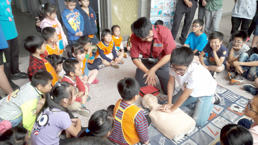 為加強師生員工防災能力,做好日常防災準備,古城國小於日前辦理「校園防火防災演練」活動。該項防災演練活動係由金門縣消防局金城消防分隊小隊長李錫安率領隊員、消防替代役男等六人組成教練團,攜帶有關的消防器材及駕駛消防車蒞臨該校協助指導辦理,以逼真的演練來模擬火災、溺水及地震發生時,師生如何逃生、自救及救護的情形,並針對各項可能造成的災害進行兵棋推演及模擬救災情況,透過演習的模式,將防火、防溺及防震教育落實於平時防災演練活動之中。 這場由古城國小所舉辦的「校園防火防災演練」活動,日前分別在古城國小活動中心、校園中庭、該校南側門旁空地等進行。參加演習的對象是古城國小全校師生員工,分成防火及防溺宣導、CPR救護演練、滅火消防瞄子操作等三個站進行分組循環演練,全校國小部及幼兒園學童在各班導師帶領及有關員工同仁的協助下,分成三組同步展開防災教育及演練。 古城國小校長楊成業表示,該校每年都會定期舉辦師生員工防災演練,希望透過辦理校園防災演練,來強化學校災害防救的應變能力,也藉此深化師生員工的防災知能及素養,以及強化校園防救災觀念的落實與實踐。