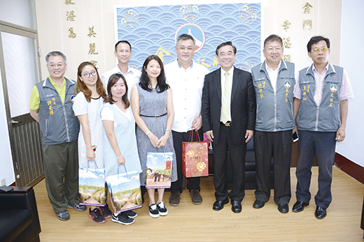 祖籍金沙鎮大地的吳友鏗,是旅居馬來西亞馬六甲的金門出洋客第四代;最近幾年,他都帶著家族成員返金祭祖尋親,兩年前更把曾祖父吳心泉古厝捐給金門縣政府好好的保存下去與樹立典範!於十四日,吳友鏗攜帶妻女三人返鄉,讓第一次返金的兩位女兒認識自己的原鄉;他並於昨(十五)日到縣府拜會,受到副縣長吳成典的熱忱接待,也歡迎新一代年輕鄉僑返金,繫緊鄉僑與家鄉的情感,攜手讓金門更美好! 於十年前,吳友鏗第一次回到金門,是由他的叔公吳永仁帶他回來尋根,也第一次看到位於大地的曾祖父吳心泉古厝,內心萬分感動!吳友鏗曾在電影「落番」裡尬一角,目前在馬六甲從事建築、開發和瀝青廠。在大馬出生成長,他前年帶著長子吳銘豪回金,這次帶著兩位女兒回鄉,主要目的也是讓兒女不要忘本。 昨天上午十一時三十分,吳友鏗和妻女一行四人至縣府拜會,副縣長吳成典接待,並談起家鄉事;縣府社會處處長陳世保、文化局長呂坤和及僑務辦公室人員在場作陪。吳友鏗也說,希望把在金門的祖業做好,讓下一代子孫都能返鄉,且不忘本,飲水思源。 吳成典表示,大地、田浦都是有歷史的地方,過去金門受到戰地軍事的影響,現在的金門發展才開始,逐步的來做重大的水、電及道路基礎建設,歡迎鄉僑回來就學、興業,互相攜手,讓金門更美好,並以金門人為榮。 吳友鏗捐給縣府的曾祖父吳心泉古厝位在金沙鎮大地十二號,是一棟二落大厝,旁有洋式疊樓護龍,目前指定為縣定古蹟。據載,吳心泉早年落番在馬來西亞麻六甲經商致富後,寄回僑匯委其二哥吳守瓢負責興建宅第,民國二十二年竣工。另,到過大地參訪吳心泉宅的人,都會有似曾相識的感覺,原來在台灣龍潭著名的「小人國」裡頭,就有一棟縮小版的吳心泉古厝,這棟老宅在日據時代曾被日軍所使用,後來國軍進駐作為連部使用,多年前由金門縣文化局公告指定為縣定古蹟,以利維修保存,見證金門人下南洋的歷史。