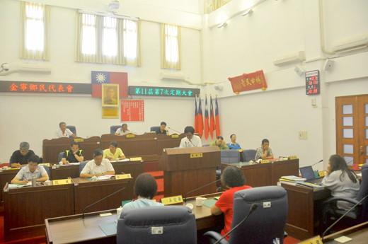 金寧鄉民代表會第十一屆第七次定期會議程最後一天審議通過鄉公所二項提案與臨時動議後圓滿落幕。主席陳成泉對各代表之建言,希望鄉公所針對代表所建議事項能夠逐條詳列並追蹤執行,或轉呈各業管單位辦理,共同做好為民服務。 金寧鄉民代表會第十一屆第七次定期會於五月四日至五月十五日一連召開十二天,昨日議程上午審議鄉公所二項提案,並進行臨時動議,鄉長陳成勇率同各課室主管列席備詢,而出席代表會主席陳成泉、副主席李開陣及代表發言踴躍,盼所會合作做好鄉民服務。 臨時動議中代表提出清潔隊資源回收場現有員工據清潔隊長稱約有140人左右,且女性占絕大多數,但目前衛生設備不足,女性同仁上廁所很不方便,請清潔隊就現有設施設法變通研議一下,例如增設流動廁所……等作法。鄉鎮民代會每年都有出國考察經費,以目前的規定離島到松山國際機場這段交通費似乎不能核銷,但若以旅行社所報團費卻又可以,此互相矛盾之處,請主計請示有關部門能考量離島交通因素,將金門與台灣往返交通費納入代表國外考察經費予以核銷。古寧北山出海口海堤雖已補強,但海路涵洞並未發揮預期效用,究其原因似乎是工法有問題,當初係為防止沖刷太厲害而以石塊墊高卻反而造成污泥堆積,建議將石頭稍微調整並敲低方能改善。另石板面當初並未切割成橫切面,造成濕滑不利蚵民作業行走,建議日後應將粗糙面加以切割成橫切面,雖造價較高但有效用。近日金門大雨氾濫成災,造成地區多處地方積水,林厝至李光前廟一帶積水最為嚴重,甚至造成村民受傷,日後若有類似天災公所應派員巡視轄區各條道路俾做必要的防治與處置。大雨過後積水稍退,但伴隨蚊蠅滋生,公所雖已於日前實施巡迴各村消毒,但仍建議清潔隊再消毒一次以維村民健康。