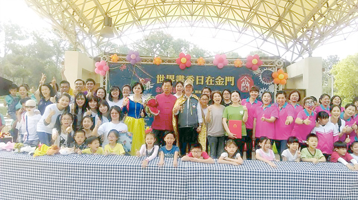 「 處處有書香」,金門縣文化局於昨日上午八時三十分假中山林舉辦親子草地故事野餐活動,活動吸引百人參與,秘書長林德恭、文化局長呂坤和、文化局副局長黃雅芬裝扮成故事裡的人物,和小朋友一起分享閱讀之樂。 林德恭表示,金門從過去以來就是一個書香社會,向來文風鼎盛,自宋明清以來總共出了五十位的進士,所以有海濱鄒魯的美譽。他指出,俗話說開卷有益,也有一句順口溜「過去不讀書,現在已經輸,現在不讀書,將來還會輸」,鼓勵小朋友多閱讀,只有知識別人搶不走,這就是知識即力量。 活動由陸爸爸及七個說故事志工隊接力演出。在陸爸爸的主持下,林秘書長扮演騎士,呂坤和局長扮演噴火龍,黃雅芬副局長扮演公主,三人生動的表演,令台下的小朋友看得呵呵大笑。陸爸爸也邀請台下的爸爸們上台和他即席的編故事,只見四位受邀上台的爸爸們唱作俱佳的賣力表演,扮演動物們以機智從巫婆那取回被偷走的笑聲。陸爸爸讓小朋友自由發想這個故事的名字,他認為親子共讀可以憑著想像力,由親子一起共同完成屬於小朋友自己的故事,也增加親子之間的感情。 現場有行動圖書館供民眾借閱書籍,以及二手書交換,不少家長帶著小朋友到巡迴車及二手書區前看書。金門大學魏建峰教授指出,「藉由活動將人群聚起來,可以使活動目的達到渲染的效果。」陳福海縣長構築的金門閱讀島願景,相信在文化局的推動及民眾的支持下,很快就能使金門處處有書香。