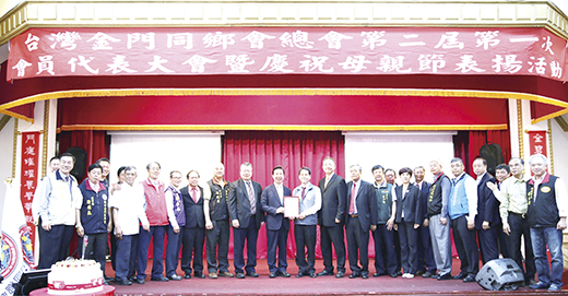 台灣金門同鄉會總會107年第二屆第一次會員大會暨慶祝母親節表揚活動,昨日上午10時30分起在台北市三軍軍官俱樂部一樓勝利廳舉行,縣長陳福海偕夫人率同財政處長許志忠、社會處長陳世保、鄉親暨社會處外配服務科長許丕祥等,與來自各旅台金門同鄉會的理事長和代表,及各界貴賓共襄盛舉,會場熱鬧滾滾。 縣長陳福海在會中也期許同鄉會能擴大服務鄉親的層面,並表示同鄉會是縣府力量的延伸,縣府將與同鄉會密切合作,共同關心照顧島內島外鄉親的福祉與權益,期望大家攜手努力讓家鄉未來更美好。 昨與會中來賓,還有立法委員楊鎮浯、林德福、金門縣議員陳滄江、福建省政府參議陳永富、晉江金胞聯會長張亞宗、新北市副市長侯友宜、議員陳錦錠、林國春等人。 旅台27個金門同鄉會,在104年7月底經過一年多的協調整合,共計25個金門同鄉會加入,終於在106年3月27日成立「台灣金門同鄉會總會」。其主要宗旨除了讓旅台的金門鄉親透過總會獲得與金門有關的資訊,整合辦理聯繫、服務各旅台金門同鄉會與大陸及海外金門同鄉會接待訪問事宜,並協助金門縣政府推動各項政務,以及關懷家鄉鄉親事務、辦理與金門有關之社會公益、公共事務等活動。 本次聯席會當日進行理監事聯席會議、政令宣導、會後進行餐敘聯誼,浯鄉子弟濃烈的熱情,在活動中交流湧聚。 本次活動內容包含會員代表大會、理監事選舉、社會福利暨施政成果宣導,以及母親節表揚活動、「世代融合」藝文表演聯誼餐會。活動配合光輝五月母親節節日,表揚各同鄉會優秀母親,也提醒大家時刻感恩母親對家庭付出的努力與辛勞,對社會家庭帶來正面能量。 昨獲表揚人員有總會黃鄭篇、許玉愛、張嬌治、蔡寶珠、台北市金門同鄉會楊淑霞、新北市金門同鄉會陳李賢、桃園市浯江金門同鄉會李淑華、新竹市金門同鄉會黃秀碧、台中市金門同鄉會莊金盞、台中市浯江金門同鄉會何素團、南投縣金門同鄉會林卓繼芳、高雄市金門同鄉會何能治、高雄市浯江金門同鄉會陳美金、屏東縣屏東市金門同鄉會林幼治、台東縣金門同鄉會朱蘭蓀、宜蘭縣金門同鄉會張淑女、基隆市金門同鄉會林金蓮、中華金門李氏旅台宗親會李余素珍、中華金門公共事務協進會許秀能、中華民國金門珠浦許氏宗親會楊金玉、中華金門旅台翁氏宗親會劉美英、中華金門薛氏旅台宗親會薛鄭彩員、中華民國金門西園旅台公共事務協會劉玥君等共23位優秀母親。