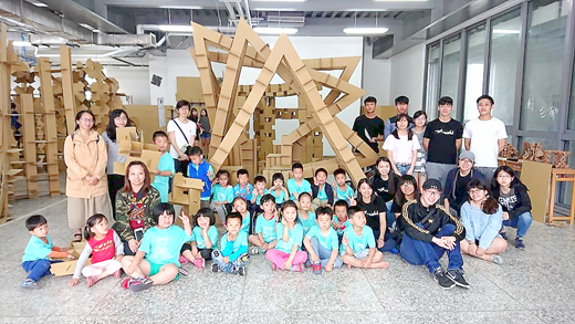 賢庵國小垵湖分校百名師生家長上月廿七日參觀金門大學建築系一年級學生舉辦的建構展。本次主題是「微建」,以金門在地文化遺產為創作來源,建構出多樣態機能空間,小朋友們也在各式作品中,享受學生們所提供的意象空間。 「瓦楞紙也可蓋房子耶!」在一片驚呼聲中,垵湖學子們透過建築系的大哥哥、大姐姐們的解說,一組一組的認識每個展場作品。五年級李子昀小朋友很驚訝的表示:「沒想到不用膠水或白膠也可以把紙拼湊成房子! 」。一年級許少洋看到其中一個以花磚為主題的作品,非常興奮的表示:「這個很漂亮,我們家也有很多花磚喔!」 策展學生表示,在作品中想要表達的意象分別是:「櫛比鱗次的閩式屋頂、走過模範街連綿的拱廊,陽光滲入花櫺,流淌在頹屋的迴廊上,紅磚的牆上嵌著浮雕花磚,聚落邊界的碉堡瞄準塵封在記憶中的砲聲,沉澱心情,喫上一口為您沏的好茶。這就是我們的瓦楞紙建構展。」希望透過展場的「頂上閩南」、「瞄準」、「迴廊」等八件大型作品,將上述金門在地文化空間完美的呈現。 金門大學建築系系主任許正平表示,這次建構展結合建築系一年級建築設計課程,讓學生利用瓦楞紙板材料特性,設計出各個小單元,再進一步依自己的設計,運用卡榫觀念,建構成1:1比例的空間,過程完全不用膠水、膠帶。而透過策展的方式也希望讓學生可以理論跟實務並重,實際讓設計者知道自己的設計空間人們使用的方式。 設計課指導老師林美吟也很開心的說:「策展從頭到尾,老師都沒有參與,只是提供一些經驗,由學生自主完成。這些初次完成1:1實體建構的學生與小朋友透過面對面的互動,看著自己的作品一步一步地建構起來,並可以被使用、被欣賞,是非常有成就感的一件事情。不論是用躺著、坐著、趴著,小朋友非常勇於挑戰作品的使用方式也讓同學們大開眼界。」 承辦本次參觀活動的垵湖分校黃偉誠老師也提到:「垵湖以科學教育為學校特色,希望透過這個活動可以讓學生們了解,傳統的建築科學及結構科學在日常生活的重要性。在本次活動中,甚至有小朋友在參觀後,興奮的開始拆解構學生作品,創作出新的作品,令人非常驚艷。」分校主任薛奕龍指出,這次的活動除了透過學校本身的力量,也要特別感謝一同參與的家長們,因為家長強大的凝聚力,一起協助接送學童到達展場,才能有這次美妙的體驗。