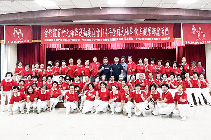 金門縣元極舞運動委員會與功法研究會日前舉辦「運動伴我行,樂活舞元極」秋季聯誼活動,金門體育會元極舞運動委員會主委吳明治、金門縣元極舞及功法研究會理事長陳碧麗、金門元極舞推廣協會理事長張金勝等人均蒞臨參與,與來自各鄉鎮的元極舞好手同場切磋、以舞會友,場面洋溢活力與溫馨。 出席貴賓包括金城鎮長李誠智、縣府教育處體健科科員林宜芃、金城鎮民代表蔡宗儒、金門縣消防局科長陳金城、西門里里長楊雨川等人,眾人共同為推廣健康運動、營造活力社區注入力量。 鎮長李誠智在致詞時,特別對所有熱愛元極舞的會友表達誠摯的敬意與感謝。他表示,在他第一任鎮長任期時,鎮公所的場地就經常提供給元極舞團體舉辦會員大會;看到大家多年來持續推動、熱情不減,實在令人感動。李誠智指出,元極舞兼具柔和與律動,是結合身心修煉的運動,不僅能強健體魄、舒展筋骨,更能陶冶心性、促進情感交流。他勉勵所有會友持續以舞結緣,以樂相伴,打造健康、樂活、幸福的金城社區。 縣府教育處代表林宜芃致詞時表示,看到長輩們舞動自如、神采奕奕,充分展現了金門人熱愛生命、積極運動的精神,並預祝活動圓滿成功。 金城鎮民代表蔡宗儒則以健康為題,分享「延壽更要減少臥床」的觀念。他指出,國人平均臥床時間長達七至八年,而芬蘭僅約二至三年,提醒大家應「長肌減臥床」,透過持續運動與足夠蛋白質攝取來維持肌力與活力。他強調,「健康的秘訣在於飲食、運動與激勵。」這番話獲得現場熱烈掌聲。 活動中,各隊演出精采連連,包括〈元極伸展操〉、〈五運亨通〉、〈春滿人間〉、〈天清地泰〉、〈和諧之光〉、〈迎春接福〉、〈春回大地〉、〈康福拳〉、〈金蓮初開〉、〈金蓮普開〉、〈元極雨露〉、〈金蓮浴舞〉等,隊伍分別來自金城新莊隊、烈嶼隊、東門隊、鳳翔隊及體育館隊等,演出內容豐富、氣氛熱絡,充分展現元極舞的精神與美學。 主辦單位感謝金城鎮民代表會與縣府等單位贈送礦泉水,並表示元極舞並非僅屬長者運動,而是一項適合全民的健康活動,期盼在社區中持續推廣,讓男女老少都能透過舞動,找回活力與快樂。活動在歡笑與掌聲中圓滿落幕,為秋日午後的金城注入一股溫暖與動感的生命力。元極舞,不僅舞出身心健康,也舞出金門社區滿滿的幸福能量。