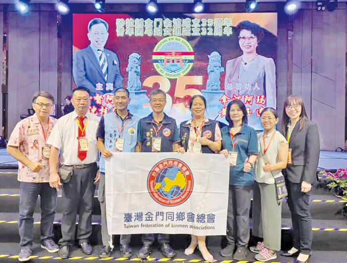 ﹝馬來西亞-古晉訊﹞ ﹝整理撰稿:僑訊小組﹞ 一面鮮紅的會旗,在吉隆坡機場迎風展開--那是雪蘭莪金門會館的印記。字體金光閃閃,映照著一群懷抱期待的面孔。由主席陳良吉鄉長親自率隊,十餘位會員身著會館制服整齊站立,大家手持行李,神情中帶著自豪與喜悅。這不僅是一趟跨國之旅,更是一場跨越時空的鄉情召喚。 9月26日清晨,來自馬來西亞各地的金門鄉親陸續抵達吉隆坡,巴生與雪蘭莪的代表會合後一同啟程,飛往古晉參加沙勞越金門會館成立35週年慶典暨青年團、婦女團32週年團慶。對於許多人而言,這場慶典不只是例行活動,而是承載了情感與歷史的集體回憶。 當飛機降落古晉,來自沙勞越的熱情早已準備妥當。晚會會場燈火輝煌,舞台上醒目的「35週年」標誌映襯著金獅與會館標誌,氣氛莊重卻不失溫暖。背景大螢幕上播放著會館歷年點滴,也特別打出「陳良吉鄉長」的名字與肖像,向這位長年奔走於各地、推動會館事務的領袖致敬。 陳良吉鄉長同時兼任馬來西亞同安金廈金門聯合總會總會長,他在致詞中語重心長地指出,會館存在的意義在於守護根脈、延續文化。他說:「我們的根在金門,無論身在何處,這份血脈與鄉情永遠不會斷。青年與婦女是會館的未來,唯有世代承接,才能讓金門精神在世界各地生生不息。」 台下掌聲如雷,許多與會嘉賓頻頻點頭,眼神中閃爍著共鳴。來自各地的代表團此刻不分地域,心都繫在「金門」兩個字上。 晚宴上,氛圍更加熱烈。雪蘭莪金門會館成員身穿整齊制服,與來自古晉的東道主、馬來西亞各州代表,以及身著傳統民族服飾的舞者們合影。土著華麗的羽飾與金門人筆挺的服裝同框,形成一幅跨文化交融的畫面。鏡頭前,大家齊比「讚」的手勢,象徵團結與祝福,也代表著對未來的信心。 而在晚宴的走廊裡,不少老朋友相見歡,有的相隔多年才再次碰面,彼此握著手久久不放,口中不停重複著「好久不見」。也有青年會員熱情交換聯絡方式,談到未來如何合作、如何讓年輕世代更投入會館,讓活動不只是傳統的延續,更是創新的起點。 沙勞越金門會館自1989年成立以來,三十五年間深耕在地,成為鄉親在異鄉的重要依靠。青年團與婦女團的32週年,更代表著跨世代的承擔與傳承。從教育、公益到文化推廣,會館承載的不僅是鄉情,更是金門人對所在社會的責任與回饋。 雪蘭莪金門會館的代表們表示,這趟旅程收穫滿滿。從吉隆坡的會合到古晉的盛典,他們見證了「同鄉」兩字的重量。這不是簡單的地緣連結,而是一種血脈與文化的呼喚。每一次聚首,都是一次能量的補給,讓金門人在異鄉更有力量。 慶典已經落幕,但留在心中的感動不會消散。正如一位代表所言:「我們帶回去的不只是照片與紀念品,而是一份更堅定的信念||無論身在何處,金門人永遠是一家人。」