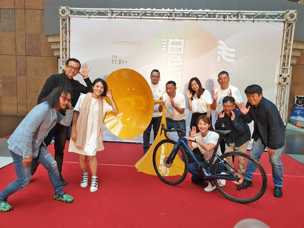 嘉賓們與裝置藝術合影,為藝術季行銷。(許峻魁攝)
