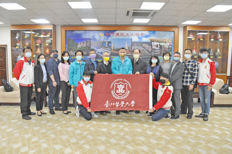 金門縣長楊鎮浯與臺北醫學大學副校長李飛鵬及團隊合影。(楊水詠攝)